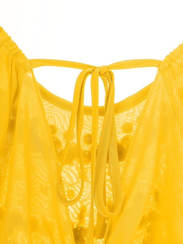 Short puff sleeve crop top is decorated with bells, plastic beads and sequins, it make a really fun sound when you dance.