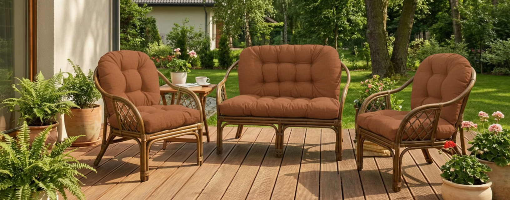ATHENA Rattanmöbelauflagen wurden für beliebte Garten- oder Terrassenmöbelsets aus Rattan oder Korbgeflecht kreiert.