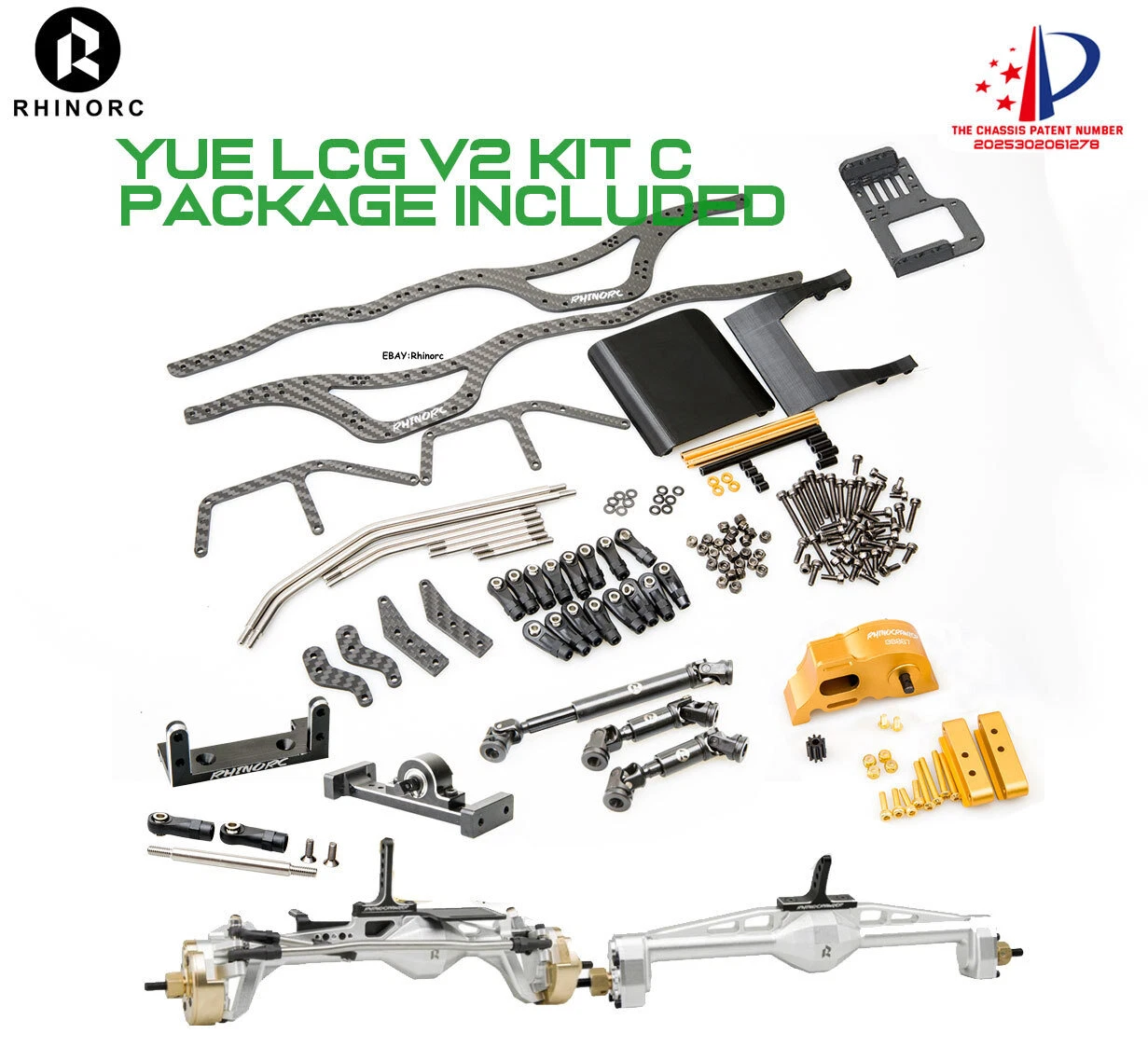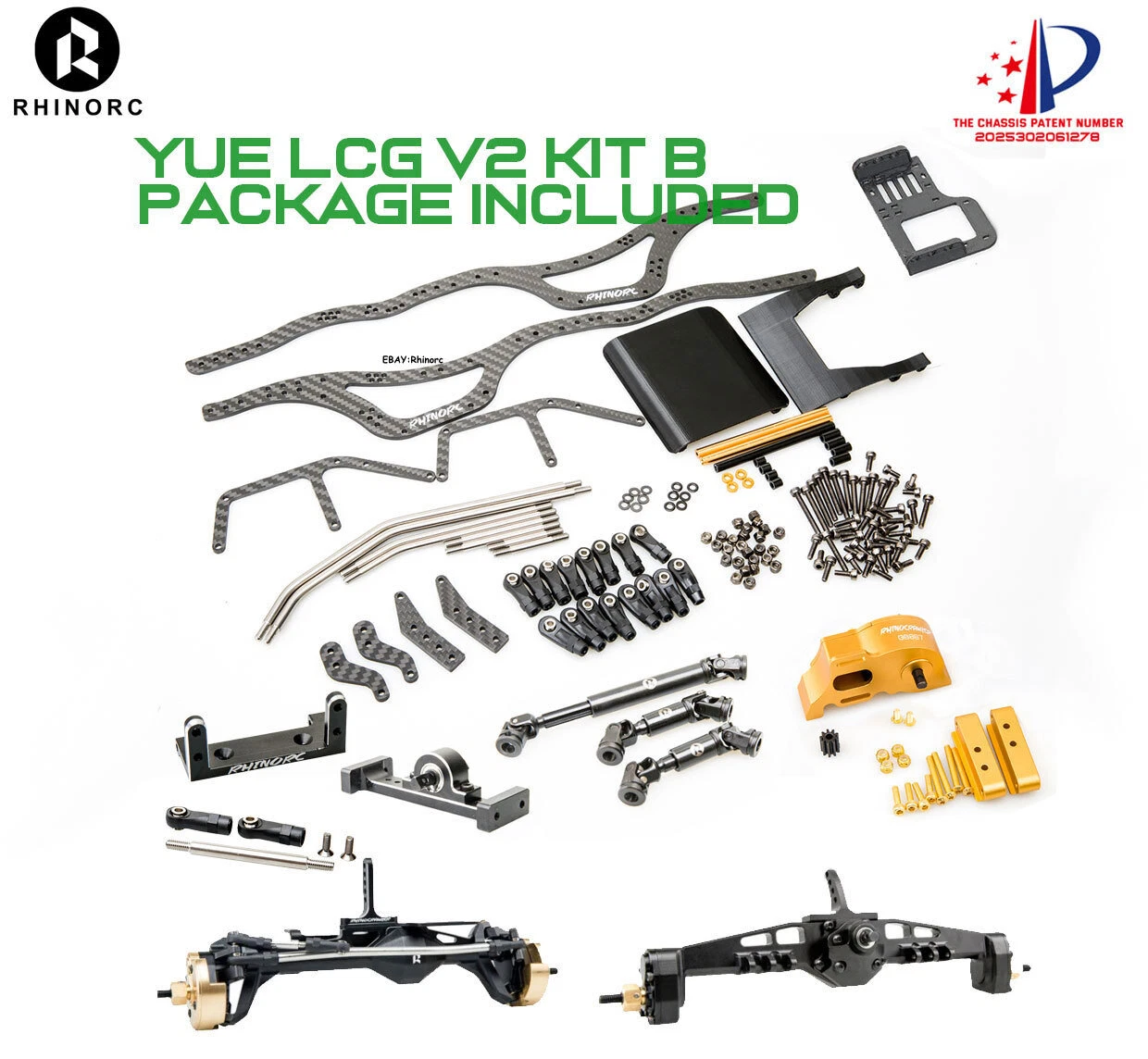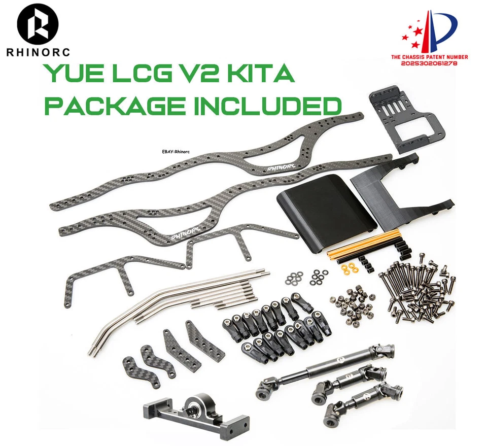 The RHINORC 1/10 LCG V2 Chassis design base on RHINO YUE LCGV1 and W1, the WB around 340mm (but support short WB size, but you need order short link from us), made of high-quality carbon fiber material and aluminum alloy. It adds many shock mounting points for better suspension tuning.Change the layout of the car, create stronger climbing ability, special angle design increases the ground clearance, making the vehicle have excellent passability. In addition, the body has chosen 3.0mm full carbon fiber board, and the high-strength body brings safer driving for extreme movements,