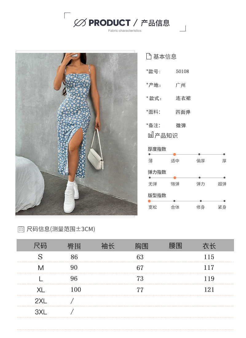 American Suspender, Chest-wrapped Slit, Daisy-wrapped Hip Print Dress for Women