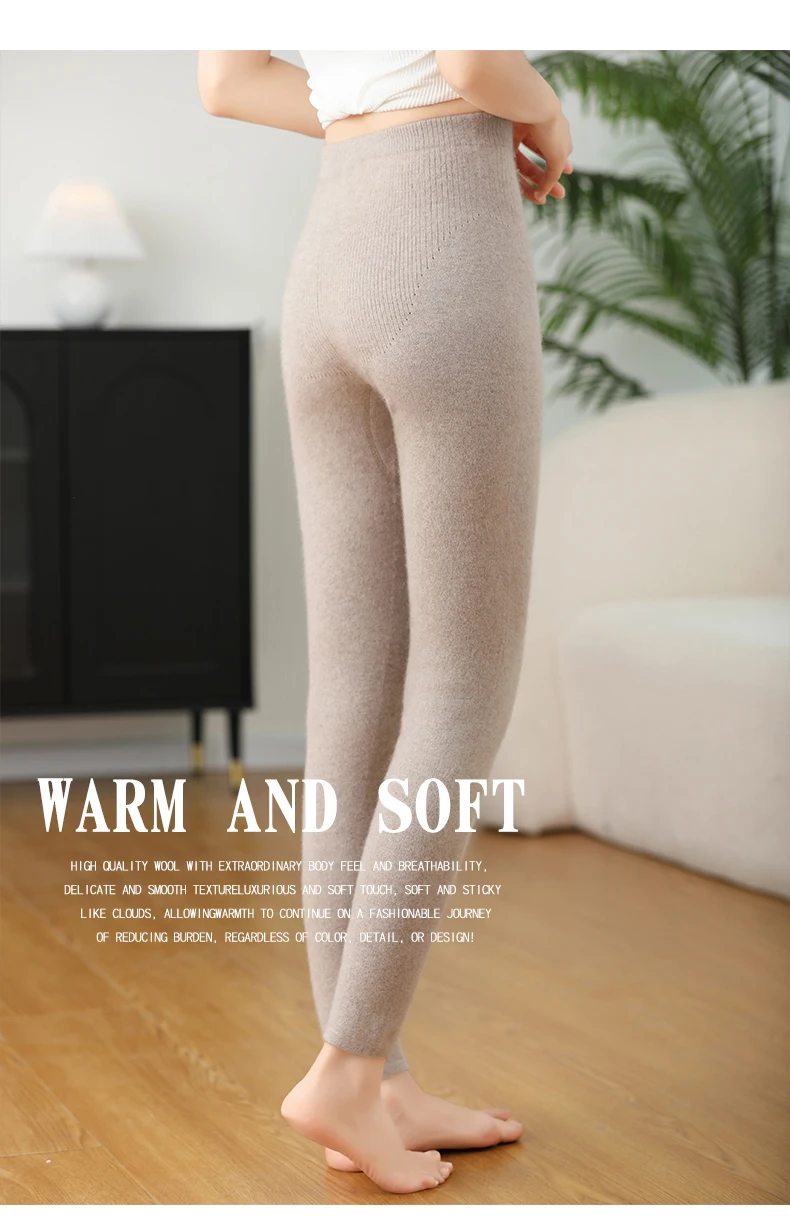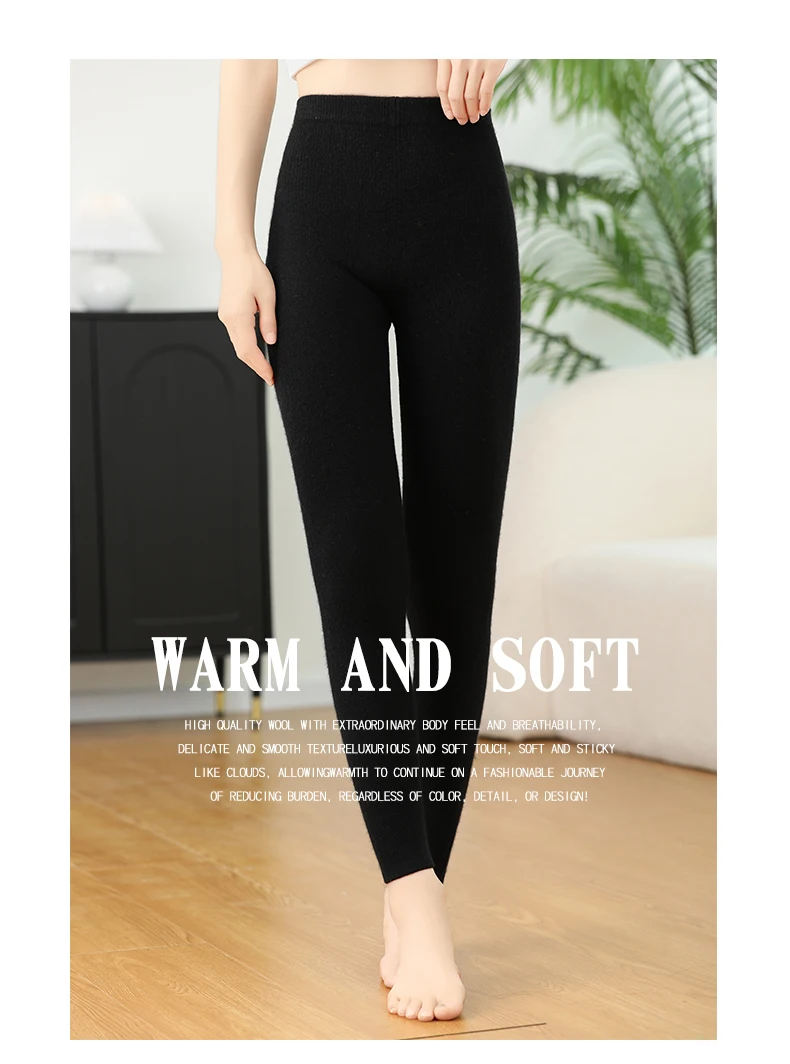 Women 100% Cashmere Pants Warm Receiving abdomen High elasticity