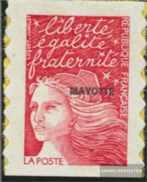 Briefmarken Mayotte 47 (kompl.Ausg.) postfrisch 1998 MarianneProdukt: Briefmarken Gebiet: Mayotte Ausgabeanlass: 1998 Marianne Titel: 47 (kompl.Ausg.) Katalognummern: 47 Ausgabejahr: 1998 Erhaltung: postfrisch