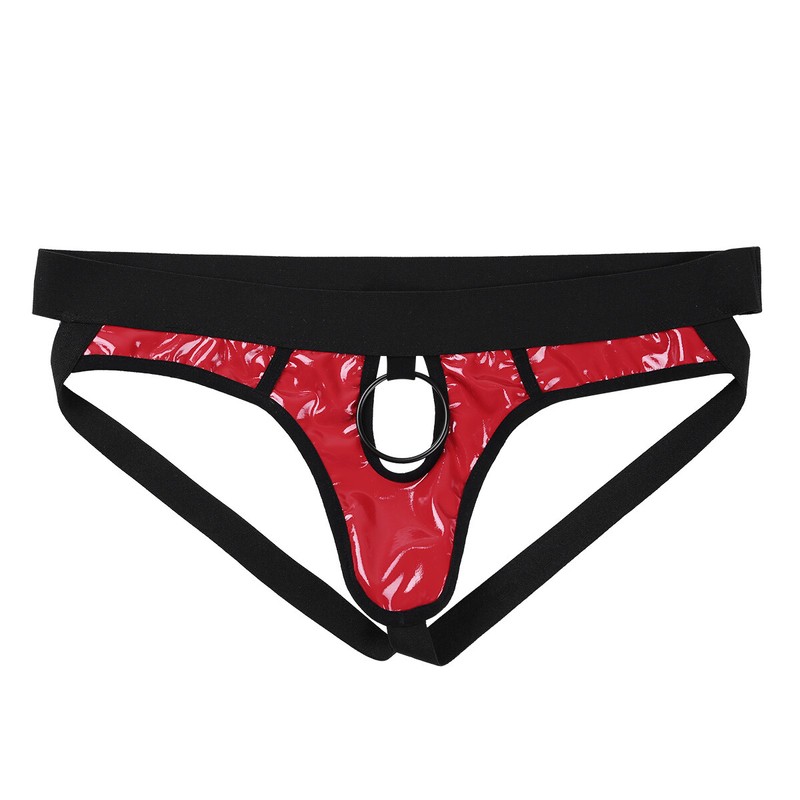 Men’s bikini G-string underwear lingerie, low rise, pull on closure.