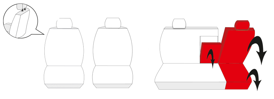 Sämtliche Auto-Schonbezüge werden für jeweiliges Fahrzeug-Modell nach Maß geschneidert und somit der Originalpolsterung zu 100% angepasst. Dank einer Spezialnaht bedecken die Bezüge Sitze vollständig, ohne die AIRBAG-Funktion zu stören.