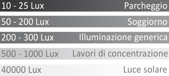 Più allontani la tua mano da una lampadina, minore sarà la luce che la illumina. Il Lux(lx) è l'unità di misura per l'illuminamento e indica la quantità di luce, proveniente da una sorgente luminosa, che viene proiettata su una determinata superficie. Viene quindi usato per calcolare quanta luce arriva effettivamente sulla tua scrivania.