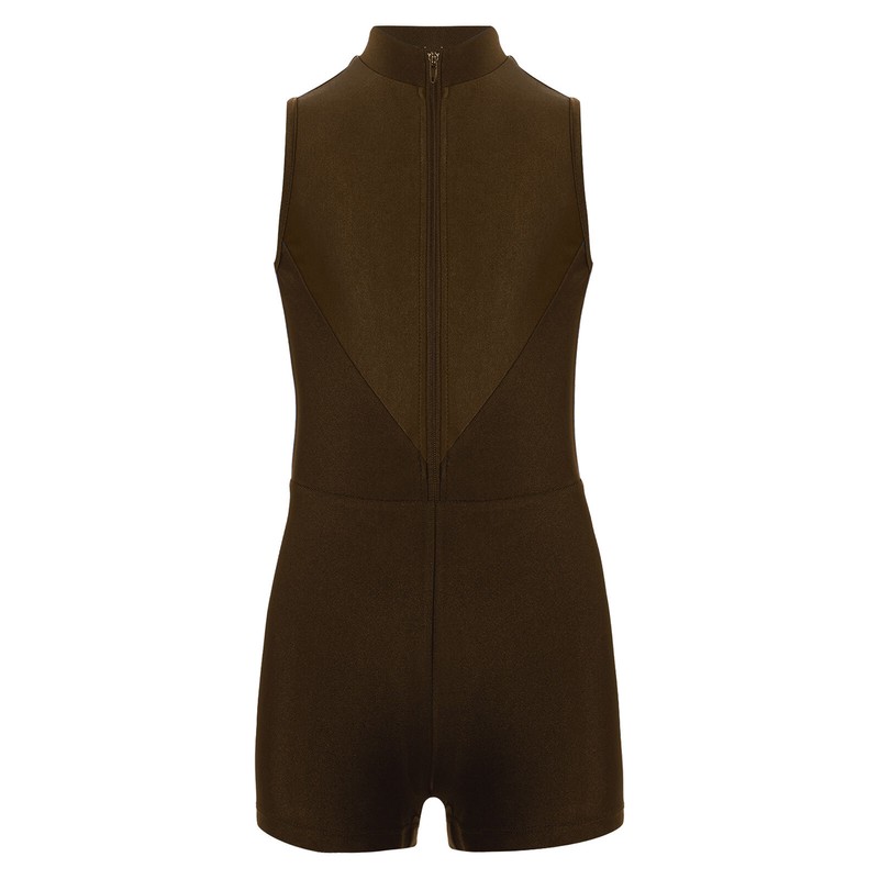 Thigh length jumpsuit provides more coverage to ensure flexibility and ease of movement when leaping, dancing or tumbling.