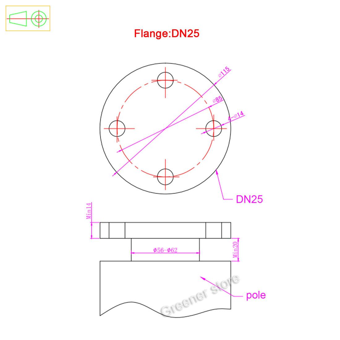 Dimensioni di connessione della flangia: φ14/0.55in, φ85/3.35in, φ115/4.53in
