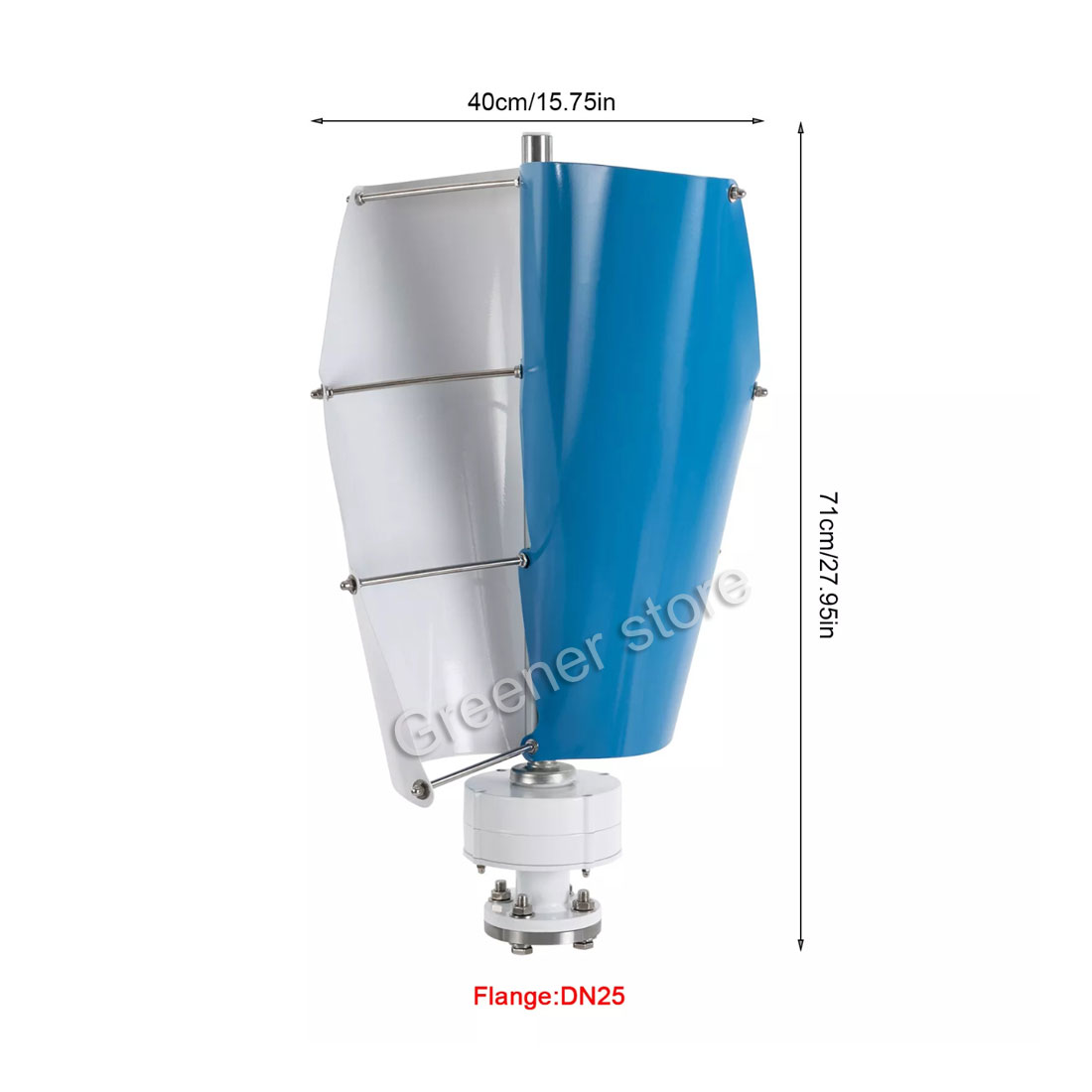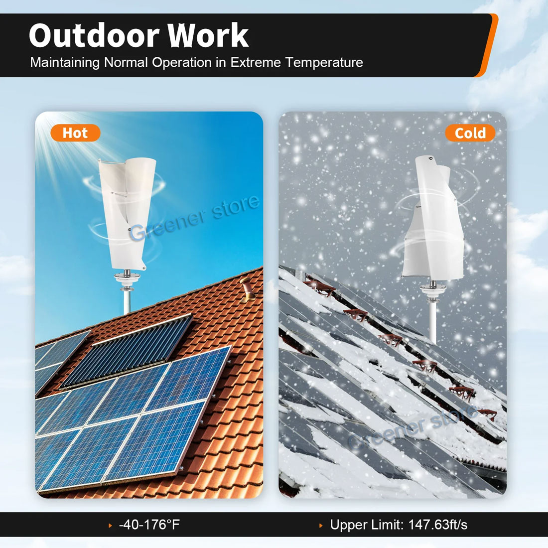 ***Lavoro efficiente: ha una potenza fino a 800 W e una velocità del vento fino a 42,65 piedi/s; la velocità del vento iniziale è inferiore a quella di altre turbine eoliche e la produzione di energia aumenta dolcemente, in modo da poter generare più energia di altre turbine eoliche entro un certo intervallo.