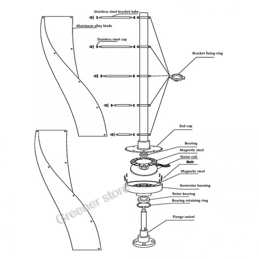***Sicuro e affidabile: Adotta un alternatore a rotore a magneti permanenti con uno speciale design dello statore, che riduce efficacemente la resistenza alla coppia del generatore, e allo stesso tempo fa sì che la turbina eolica e il generatore abbiano caratteristiche di accoppiamento più favorevoli e l'affidabilità del funzionamento dell'unità. Inoltre, frena automaticamente quando raggiunge la velocità massima di 300 giri al minuto.