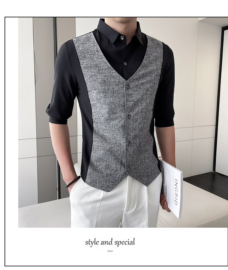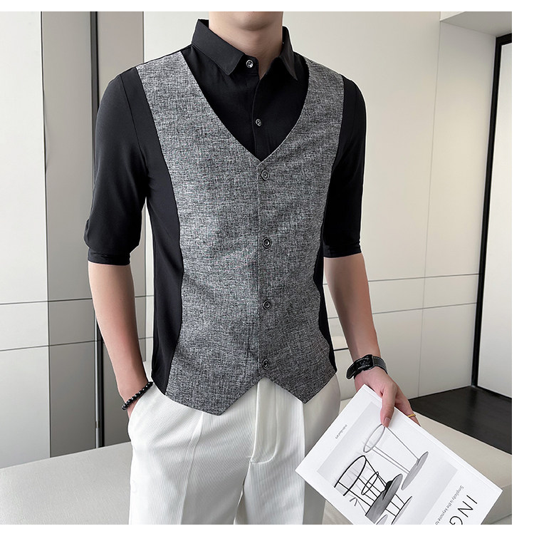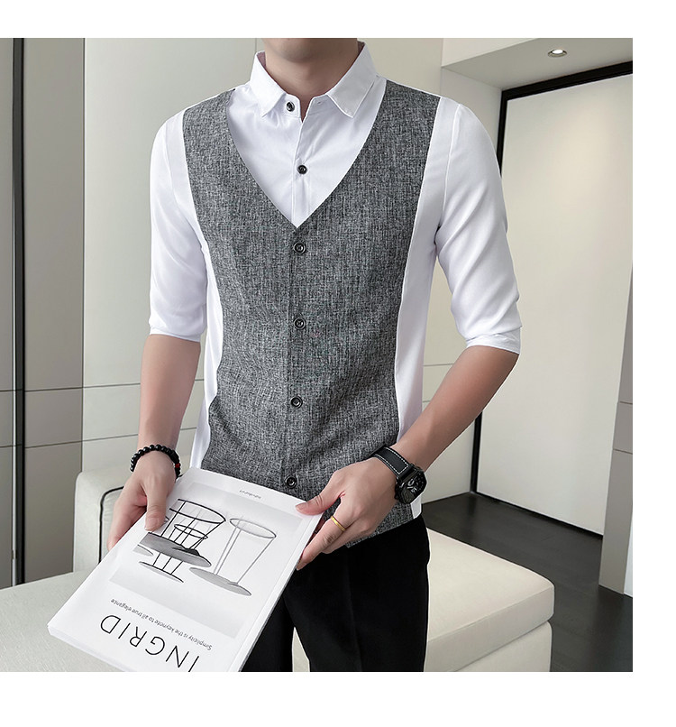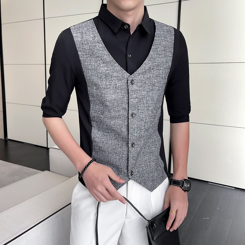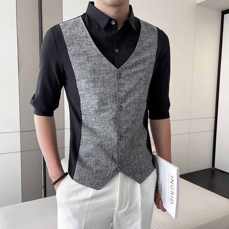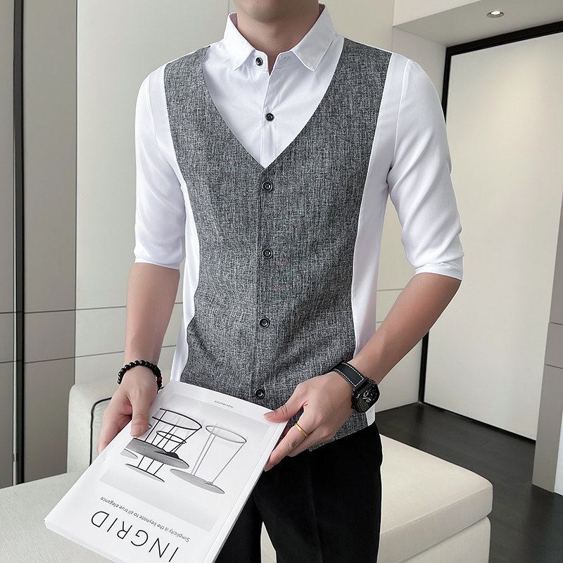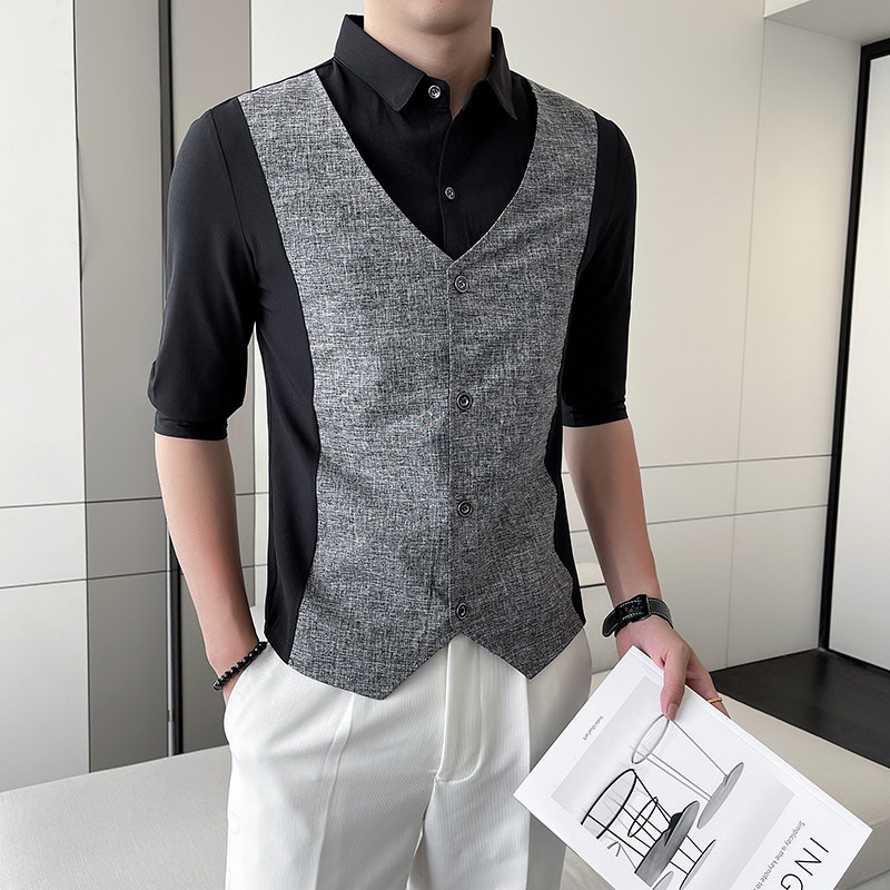 Men Short-sleeved Shirt Summer Workwear Slim-fitting Casual Shirts Business Tops