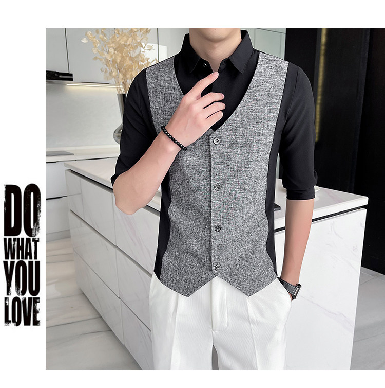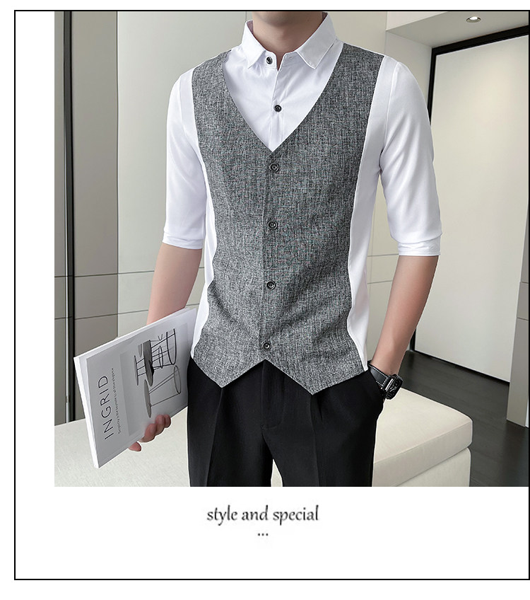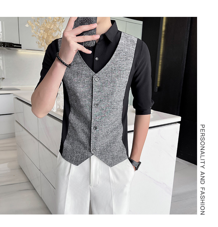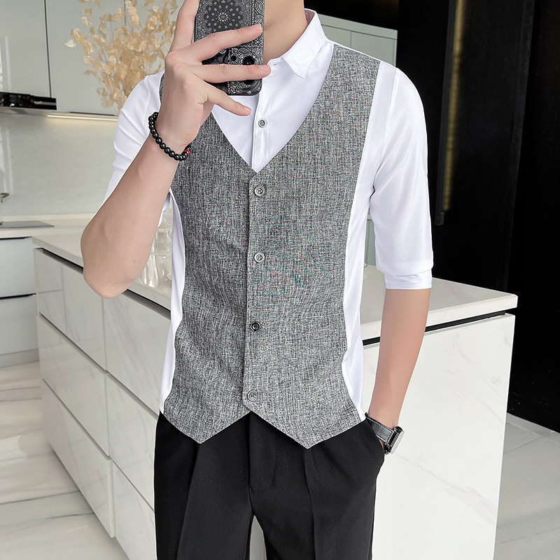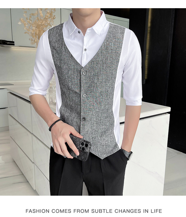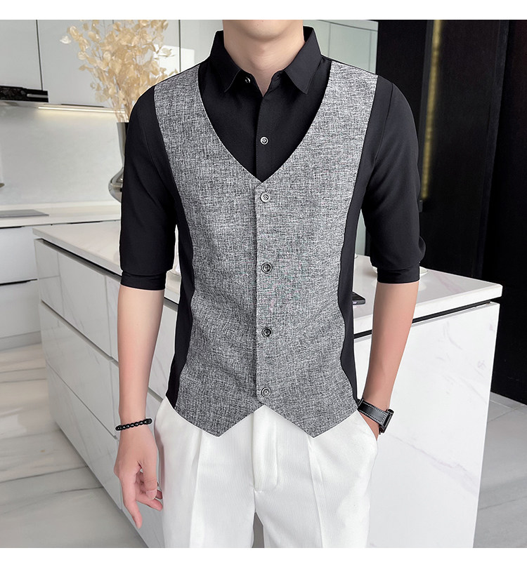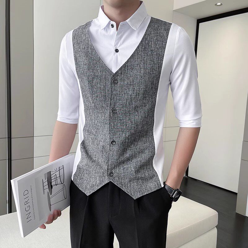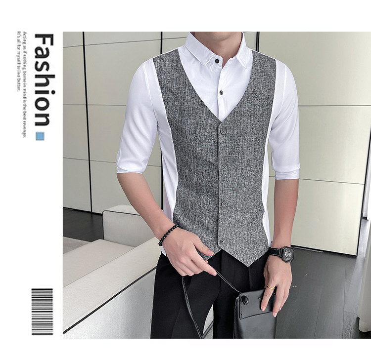 Men Short-sleeved Shirt Summer Workwear Slim-fitting Casual Shirts Business Tops