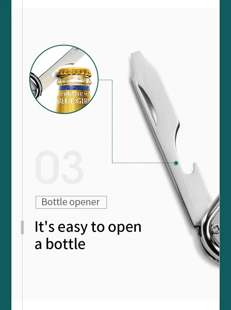 2. Its small body integrates multiple functions such as: nail clippers, nail files, small knives, bottle openers, screwdrivers and small scissors.