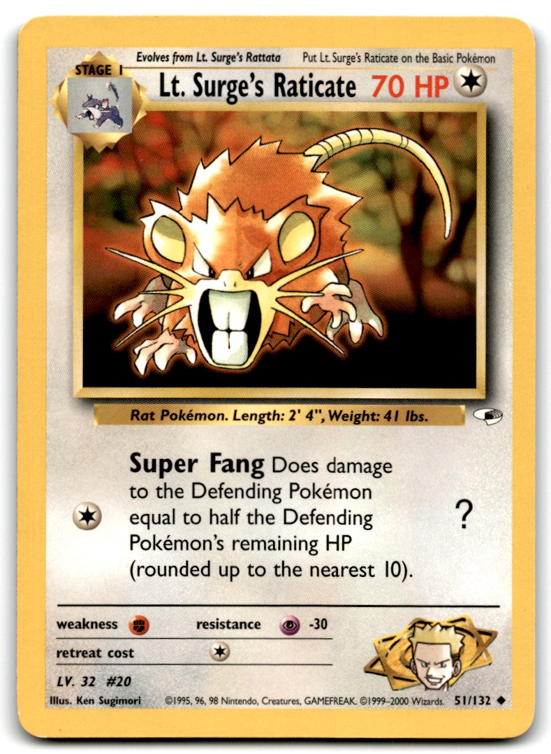 | Lt. Surge's Raticate 2000 Pokemon Gym Heroes Unlimited Uncommon #51/132 - LP |
