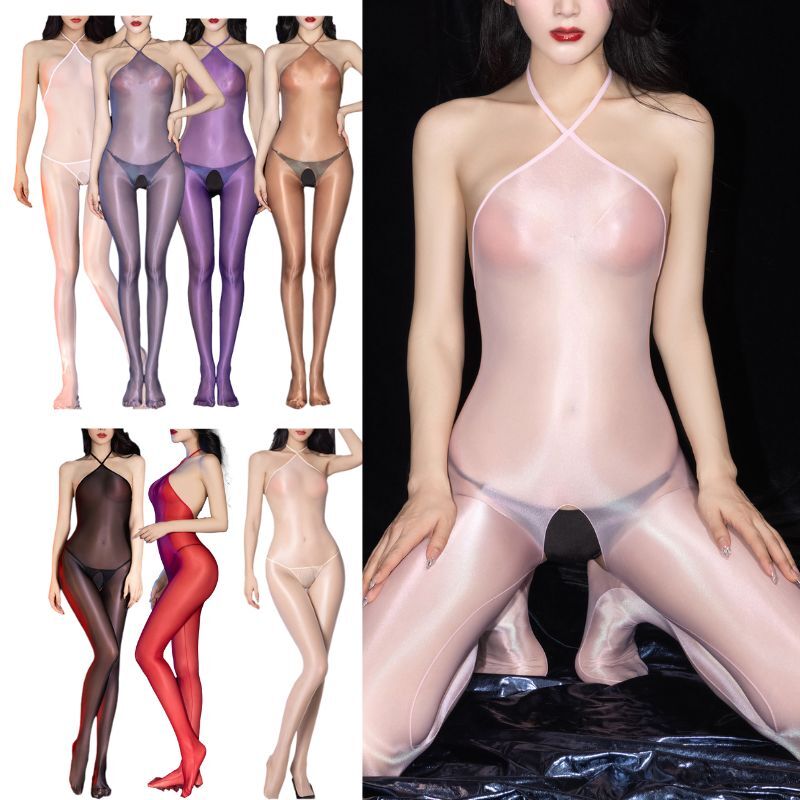 Womens See-through Mesh Crotchless Bodysuit Hollow Out Halter Backless Leotard Lingerie Nightwear.