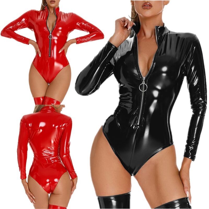 Glossy bodycon bodysuit enhances your fair skin, which is perfect to pair with jeans, shorts, leggings, skirt and skinny pants.