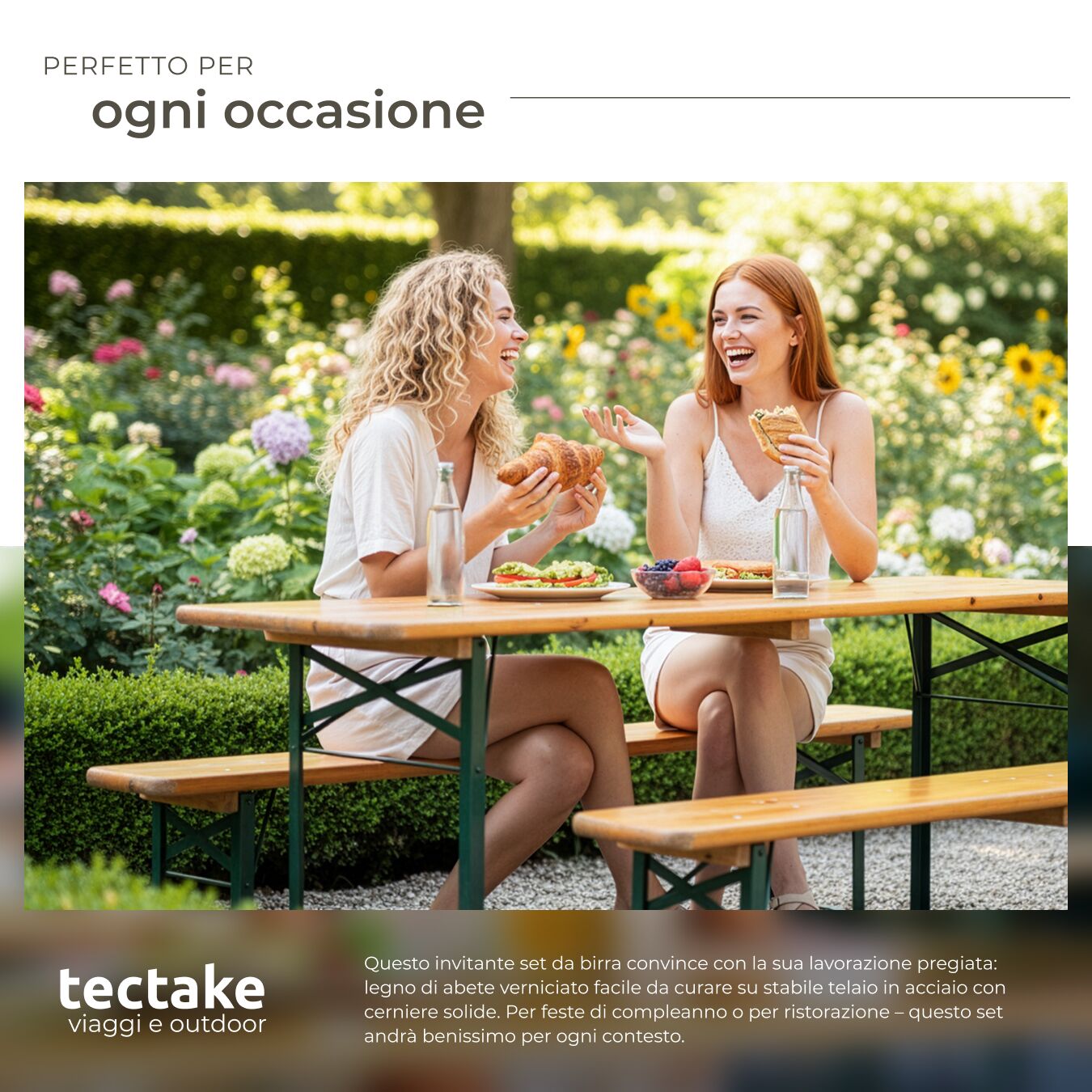 Il set birreria Sissi di tectake è composto da un grande tavolo e due comode panche per offrire spazio a sufficienza per otto persone. Un set in tre pezzi che non può mancare nel tuo spazio esterno per feste in giardino, riunioni di famiglia o incontri conviviali.