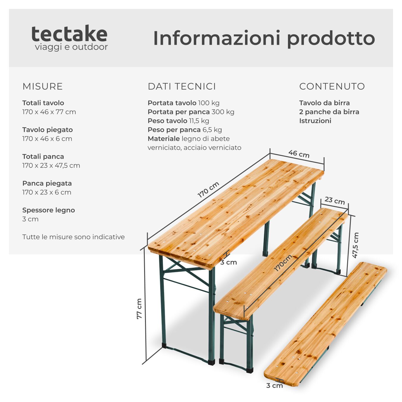 - Materiale: acciaio, legno di abete