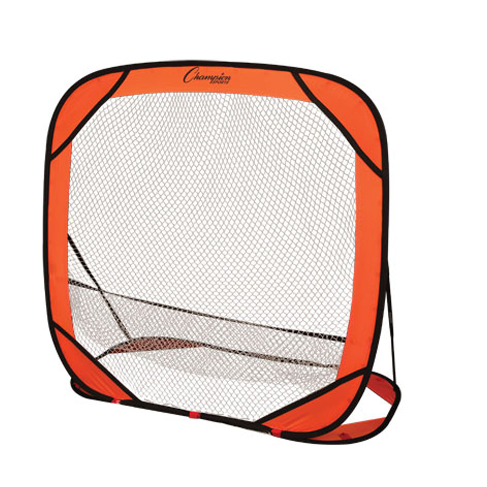 The Champion Sports Pop-Up Multi-Sport Net is a convenient training tool for various sports. This 5' x 5' net quickly transforms from a catch net to a goal, making it perfect for practicing soccer throws or honing baseball and softball skills. The net's design includes breakdown poles for easy assembly and ground stakes to ensure stability during use. A carrying case keeps everything organized for effortless transport to and from the practice field.