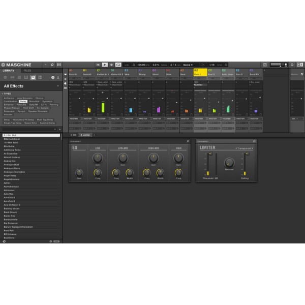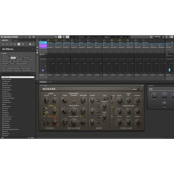 Die MASCHINE MK3 wird mit einer umfangreichen 8 GB Sound-Library geliefert, die Samples, One-Shots, Sliced Loops, Sample-Instrumente und Drum-Kits enthält. Zusätzlich stehen 25 professionelle Studio- und Sound-Design-Effekte wie Filter, EQs, Delay und Reverb zur Verfügung. Die Software KOMPLETE Select ist im Lieferumfang enthalten und bietet Zugang zu über 33 GB an Sounds. Ein Upgrade auf die Vollversionen von KOMPLETE oder KOMPLETE Ultimate ist möglich.