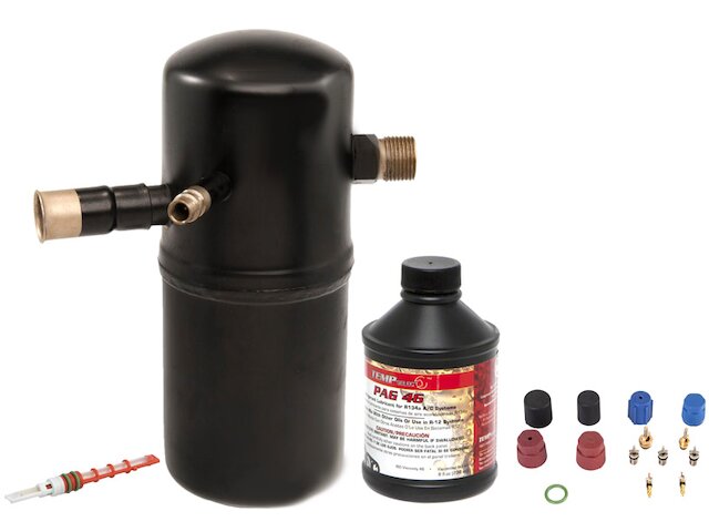 Kit Includes: Accumulator, Orifice Tube, Compressor Oil, O-Ring/Gasket Pack, Cap and Valve Kit