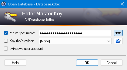 For even more security you can combine the above two methods: the database then requires the key file and the password in order to be unlocked. Even if you lose your key file, the database would remain secure.