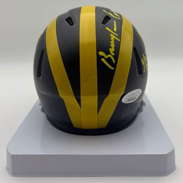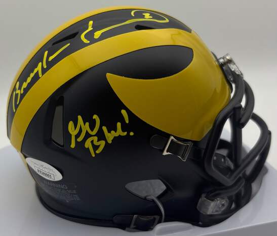 Expertly signed by Braylon Edwards, this Michigan Wolverines mini football helmet adds an authentic touch to any collection. Verified by James Spence Authentication (JSA) CoA, this high-quality piece guarantees its value. Own a piece of history and display your love for the game with this officially licensed item.