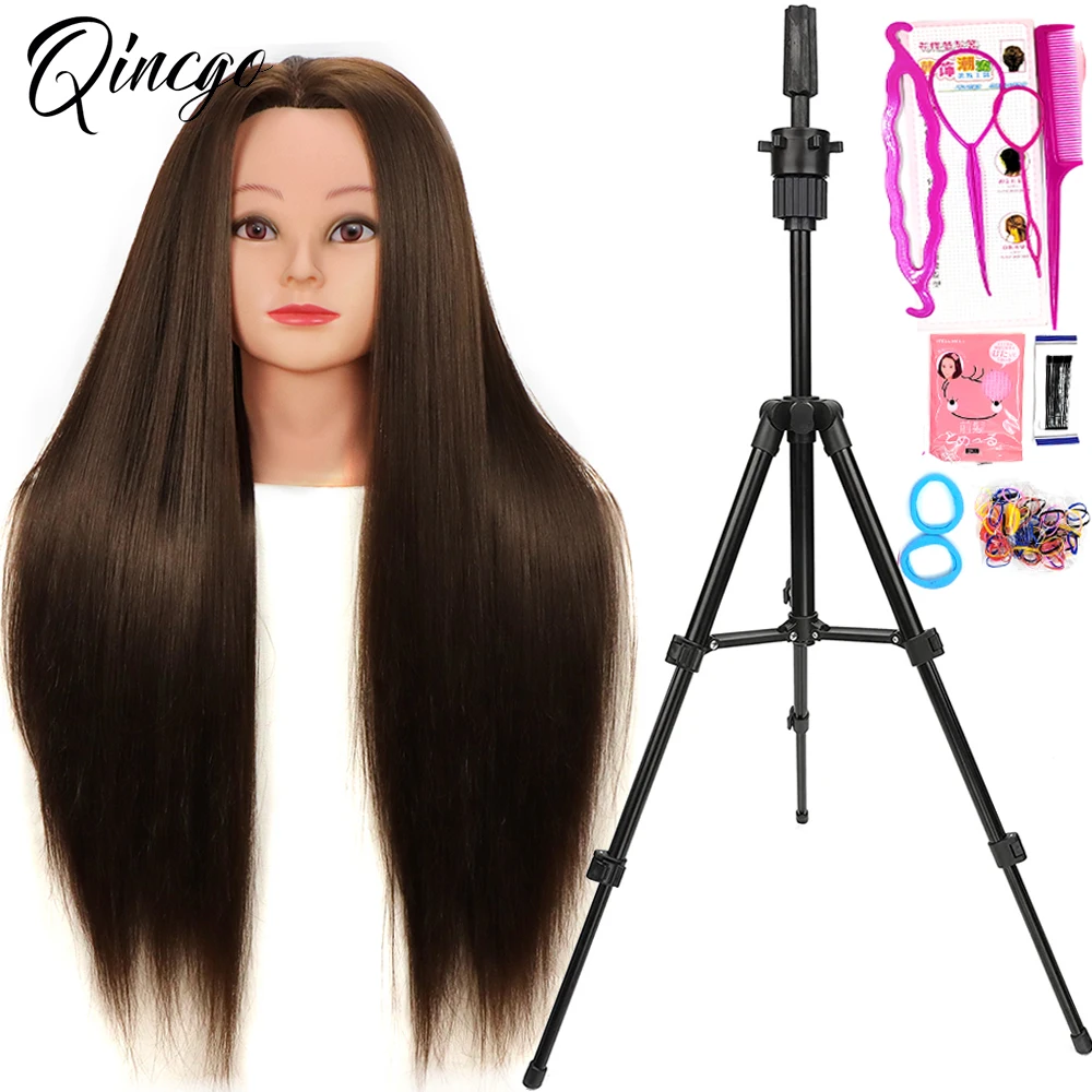 Mannequin Head Hair Styling Manikin Cosmetology Doll Head With Stand Tripod Practice Braiding Hair Hairdressing Training Model
