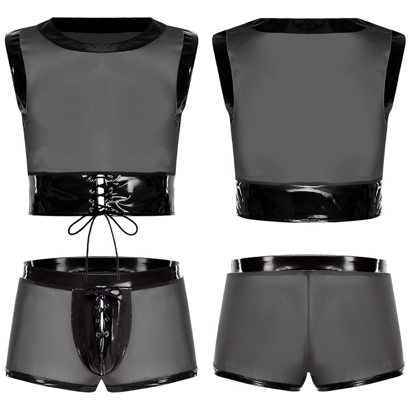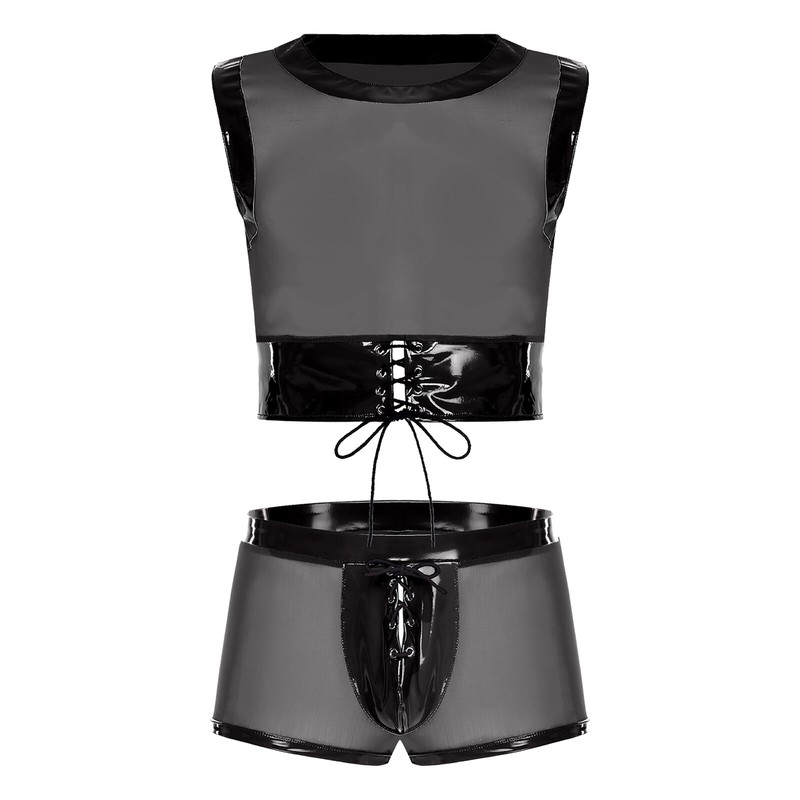 The bulge crotch briefs shorts are designed to provide a unique and provocative silhouette, enhancing the overall appeal of the set.