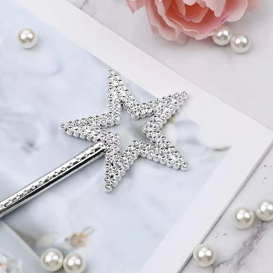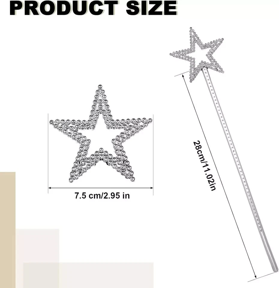 Bring a touch of sparkle and enchantment to any costume with this magical Silver Star Fairy Princess Wand! Measuring approximately 35cm, this shimmering accessory is the perfect addition to any fairy, princess, or magical character outfit.