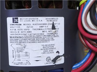 EMERSON KA55HXSMW-2346 Blower Motor 1/3HP 115V 1075RPM 3SPD 1864