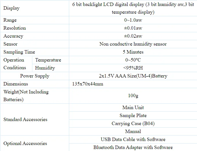 *This is a real portable water activity meter, with a weight of only 100 grams, lighter than a mobile phone, and a precision of 0.02 aw, easy to measure water activity anytime and anywhere.
