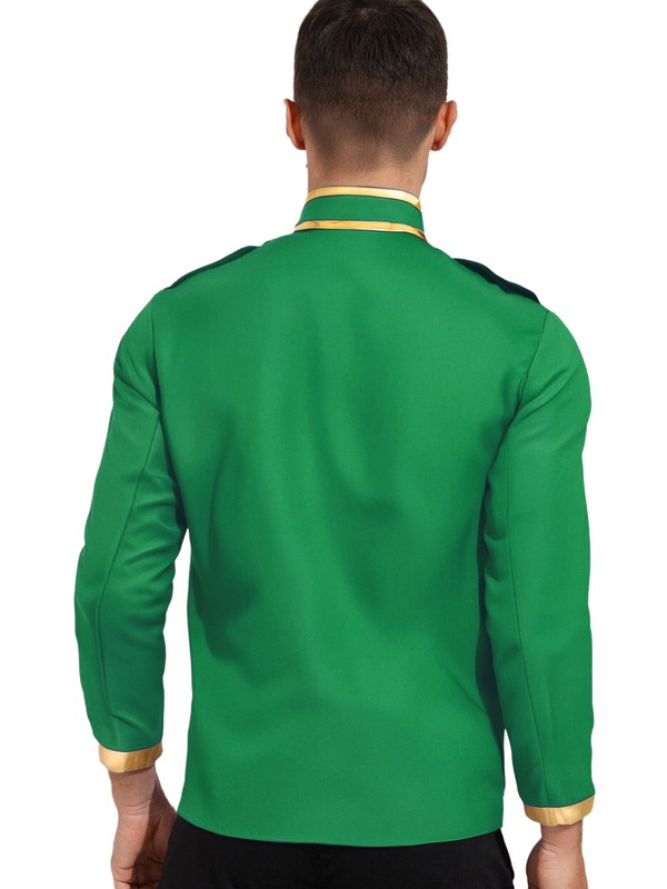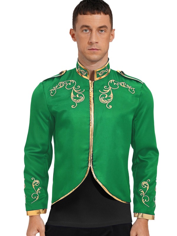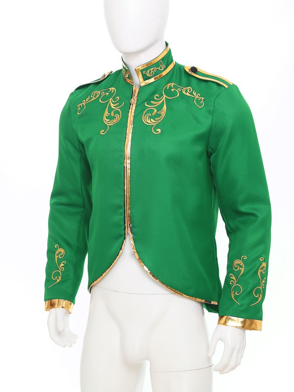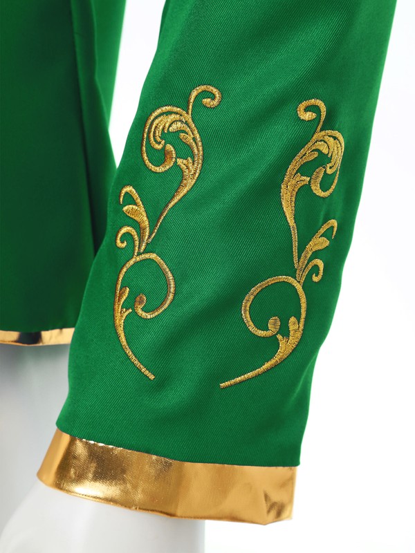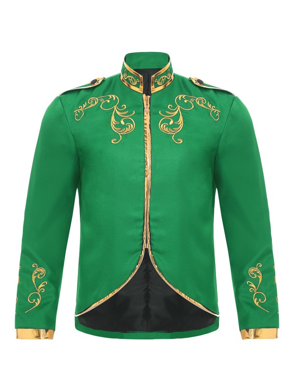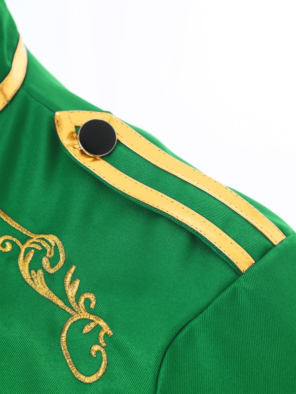 Decorated with shiny gold trimming at collar, cuffs and front, exquisite embroidery adds a medieval royal style .
