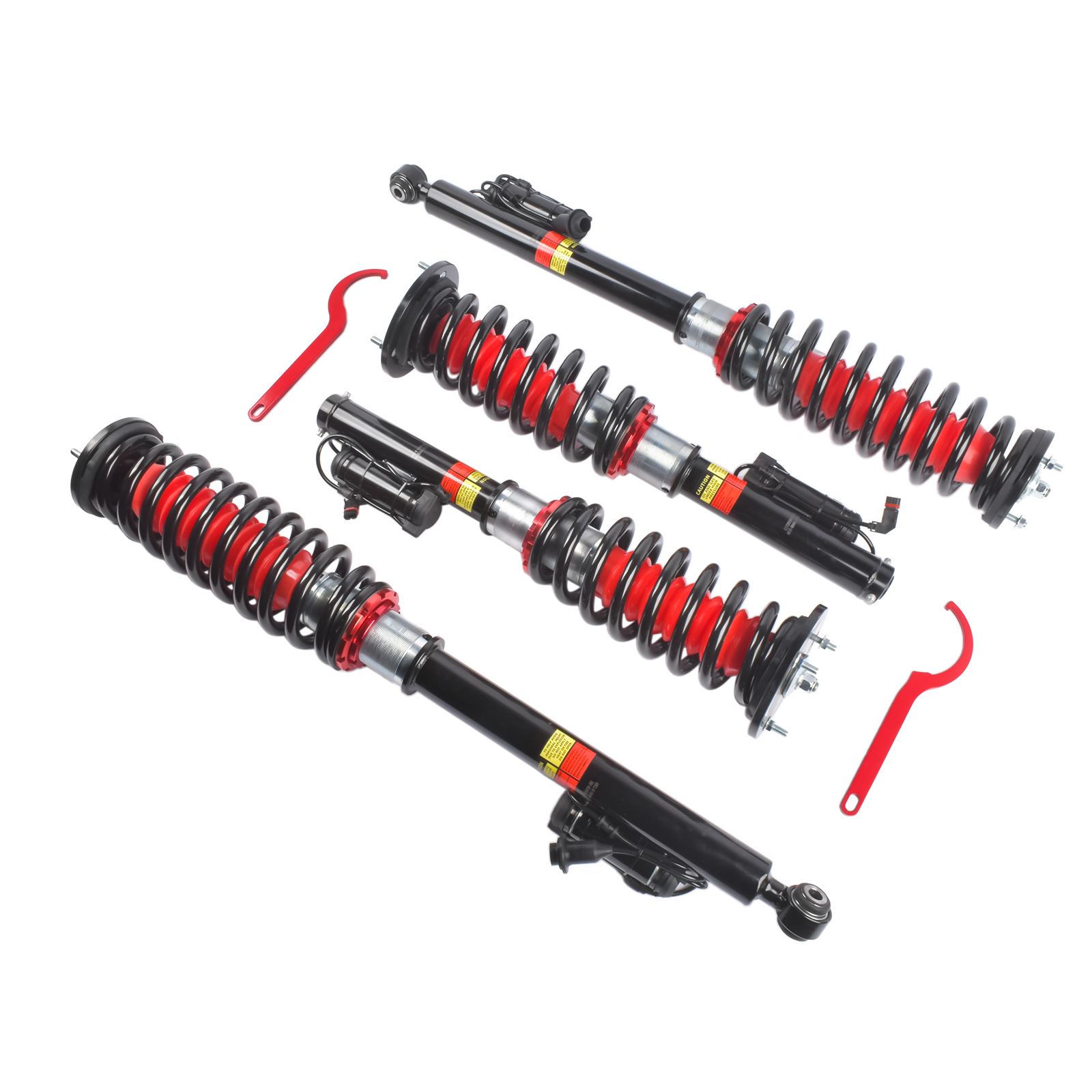 4. 24 Clicks of Rebound Adjustments --- This allows you the ability to perfectly dial in your coilovers system. For a nice comfortable driving, set damping to full soft. For more spirited driving, set it to 16 clicks. For occasional track days, set it to full stiff.
