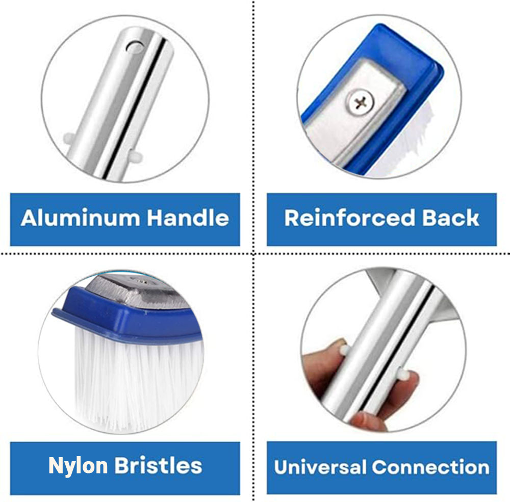 ✅ Ultra-Efficient Cleaning: Tightly packed, stiff nylon bristles sweep away algae, leaves, and debris from walls, floors, corners, and steps.