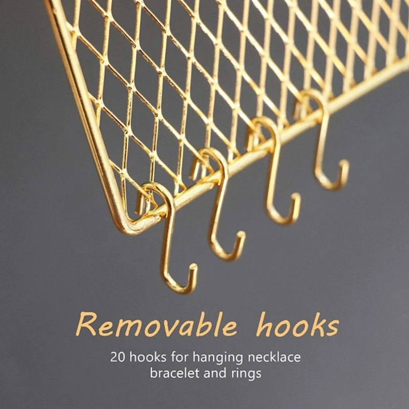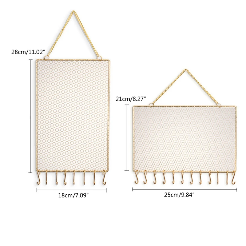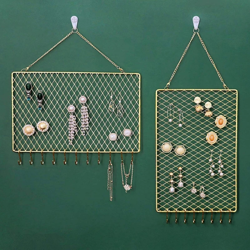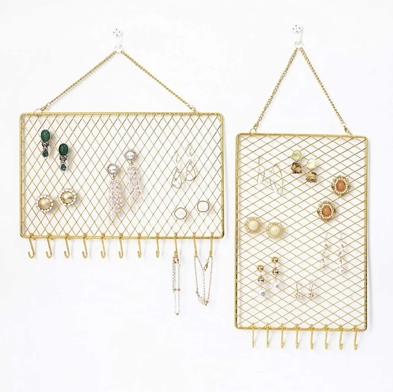 Each organizer has hooks to organize and display necklaces, bracelets, watches, and a variety of other accessories with wall mounted jewelry organizers.