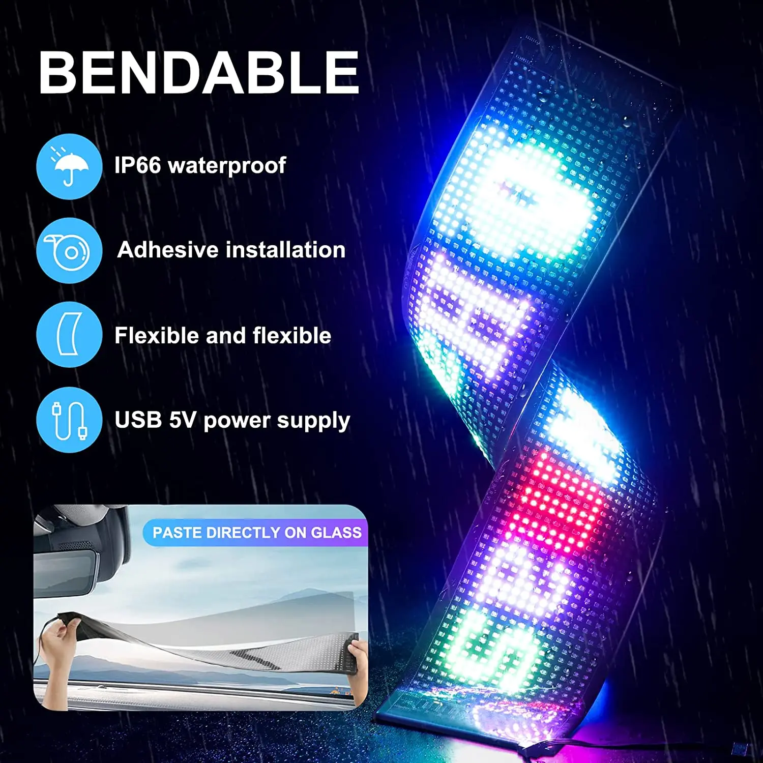 The LED matrix panel is light and thin,uses RGB lamp beads,Flexible board design,can be bent and folded at will