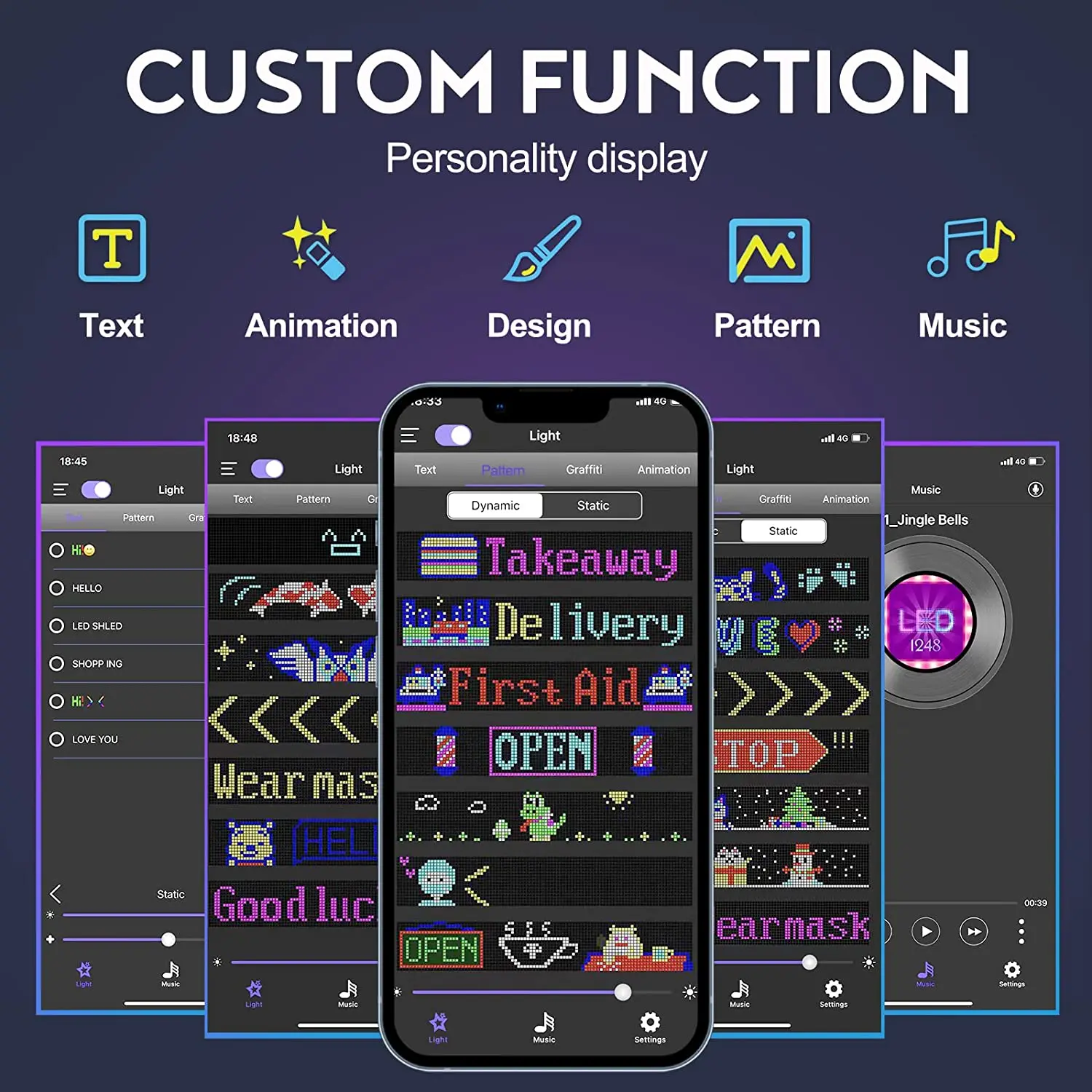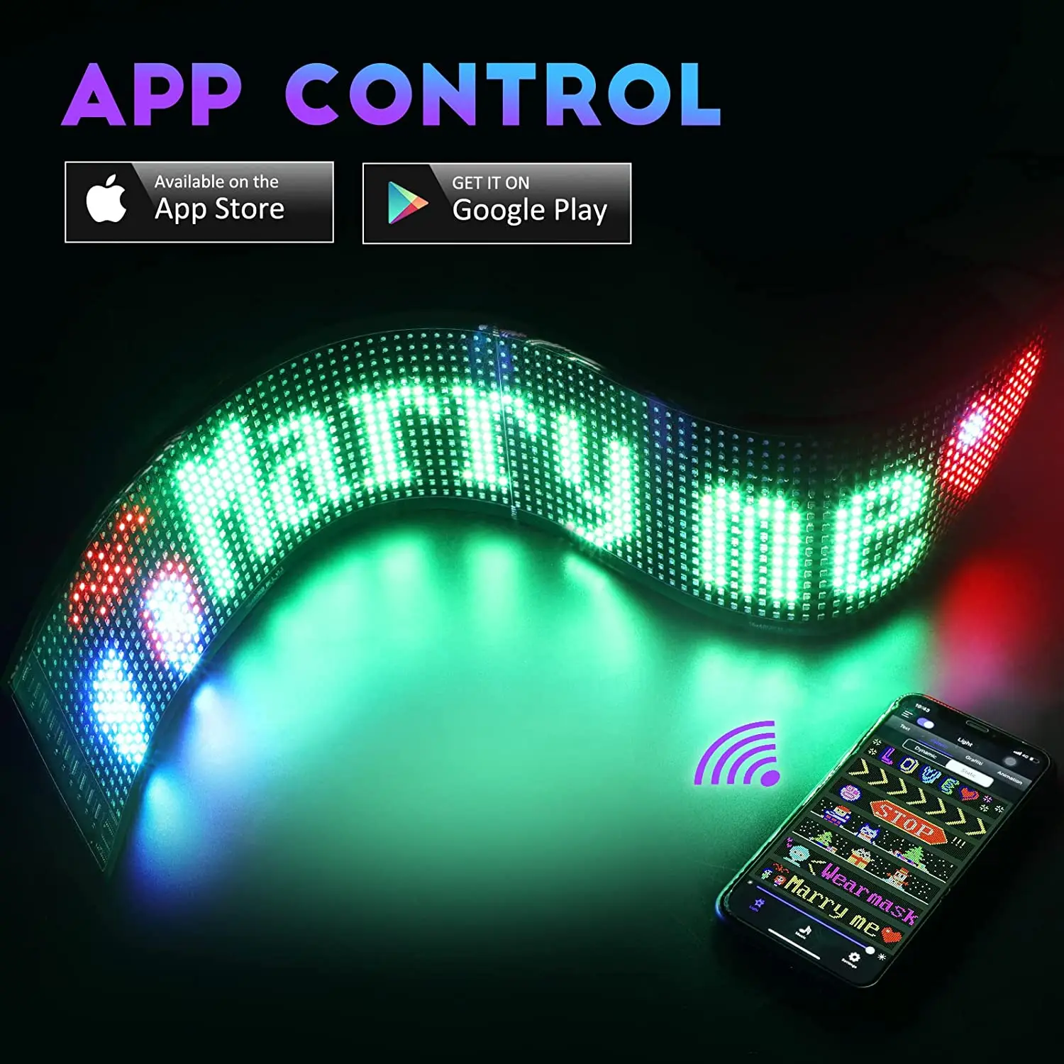 LED sign is controlled by a Bluetooth-connected app, which supports connecting multiple LED displays at the same time, making your store more eye-catching, the app has built-in many interesting modes and animations. Your phone makes it easier to customize fun patterns and text to personalize your store.