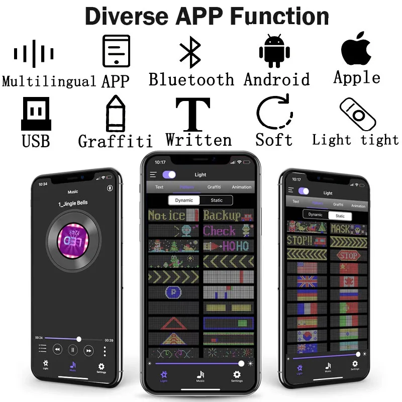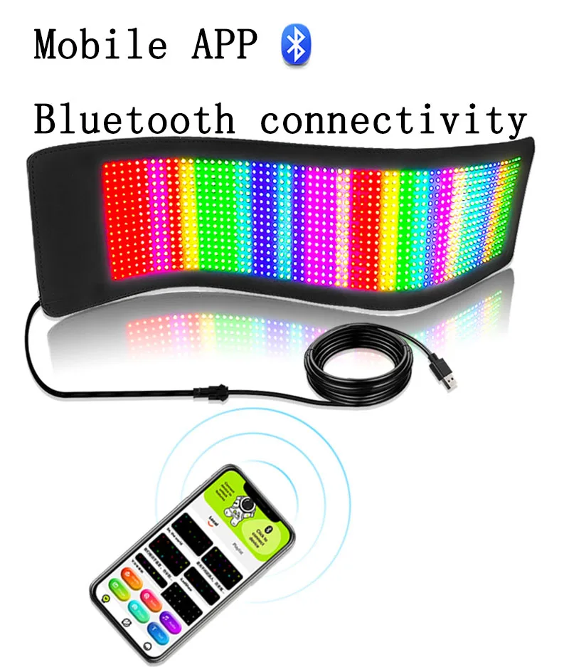 Smart App Control Soft LED Panel Flexible Led Car Display, Bluetooth LED Screen Sign Scrolling Message Display Board for Store Advertising, Pgrorammable Flexible LED Car Screen