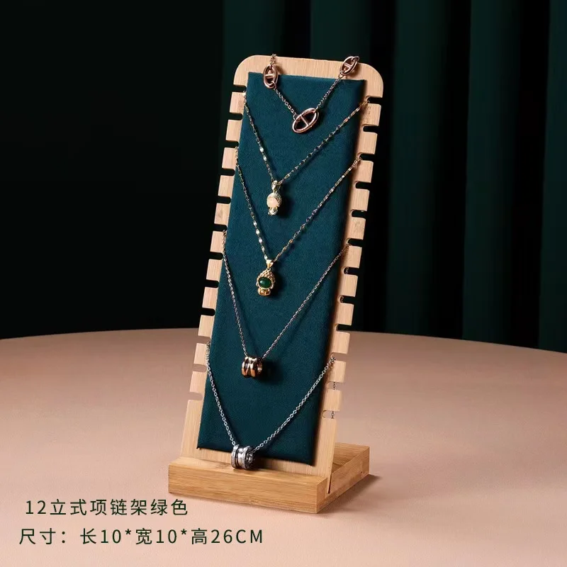 Made from bamboo wood and pu leather, stylish, modern design. display jewelry, necklace, pendant naturally.
