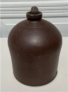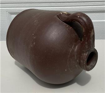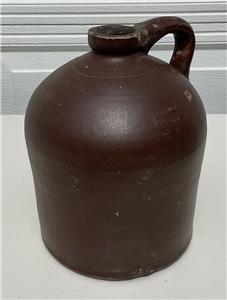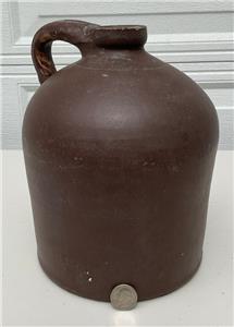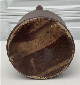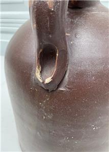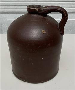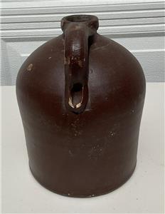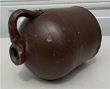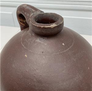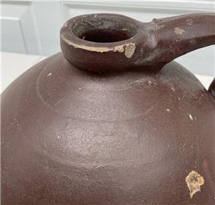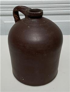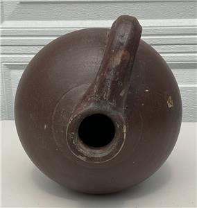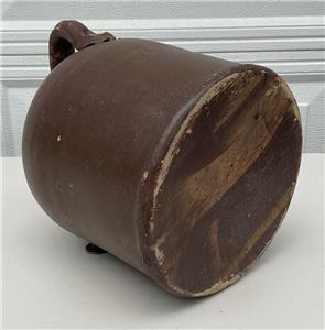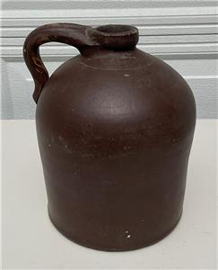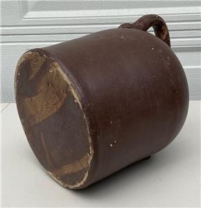 This is a wonderful antique primitive brown stoneware jug with applied handle.