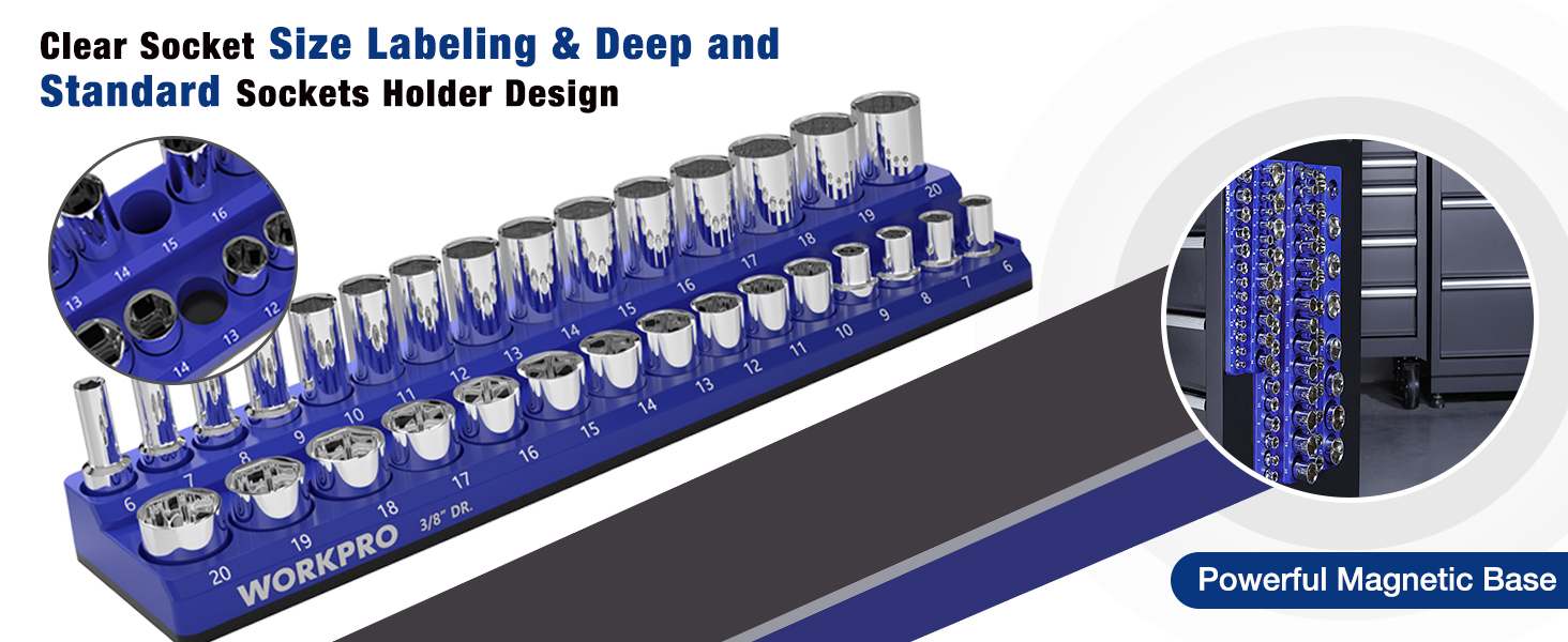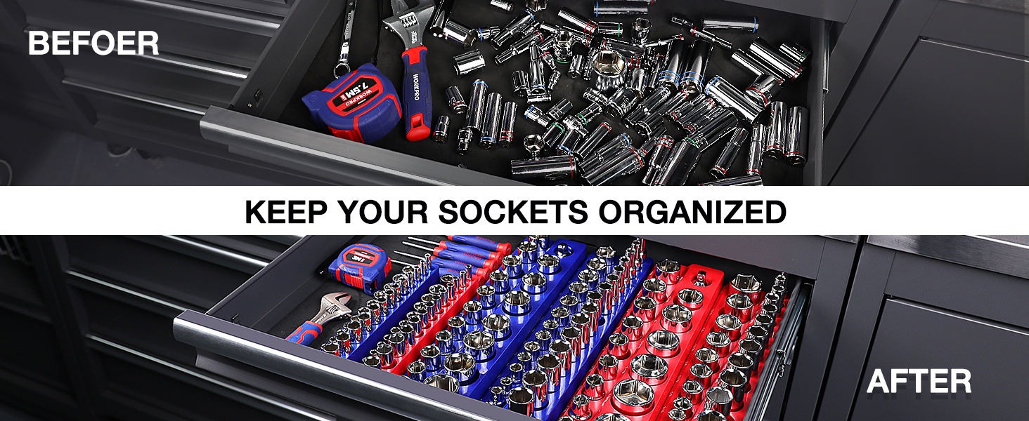 πSuitable for Standard and Deep Size Sockets: 1/4", 3/8" and 1/2" drive magnetic socket organizer is designed for safe storage of deep and standard metric sockets, place all your sockets properly.