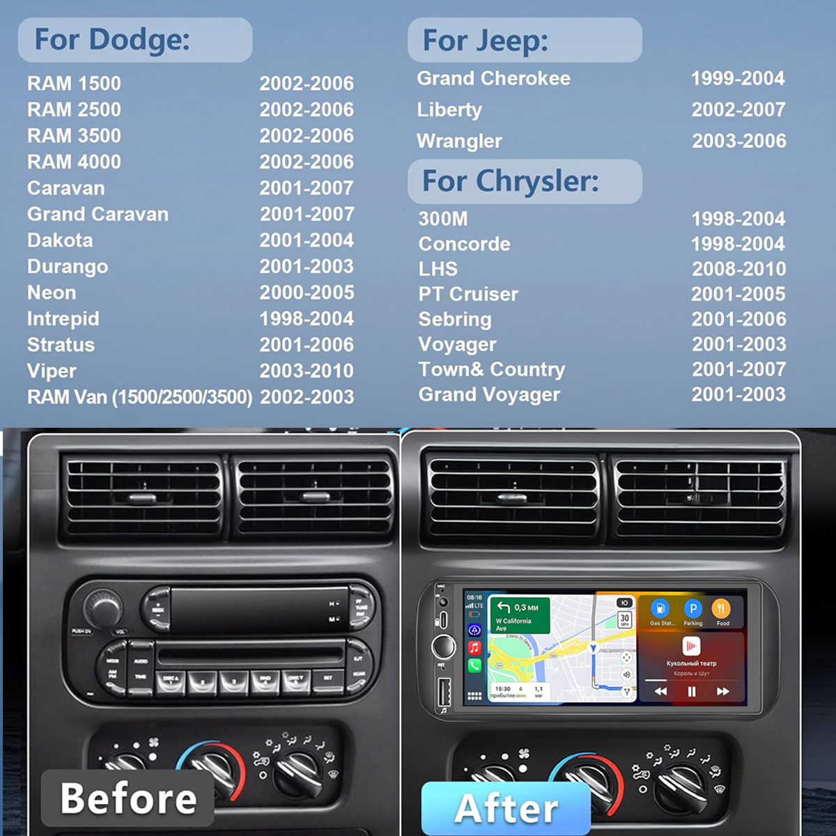 Android 15.0 Car Stereo Radio Plug & Play For Dodge/Chrysler/Jeep