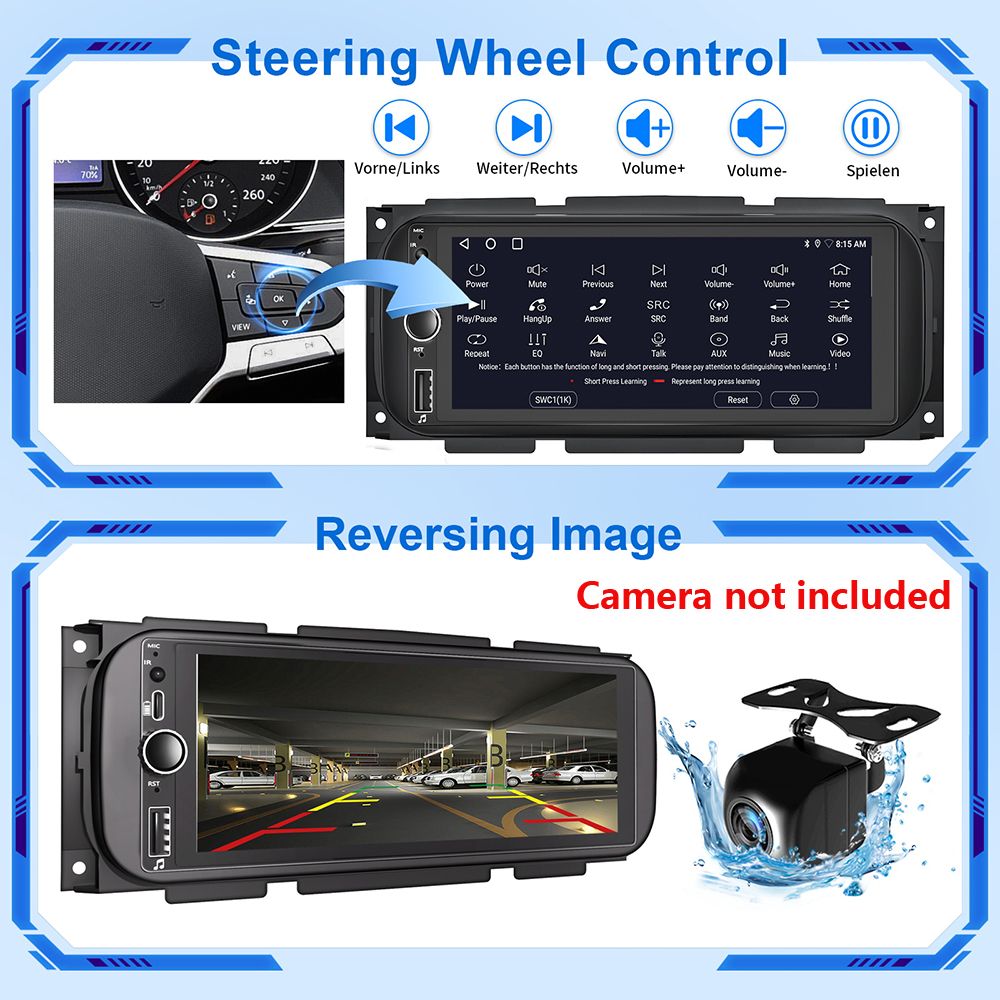 7. Rear view function: Support Rear view camera input, backing car more safer and convenient (Camera not included!)
