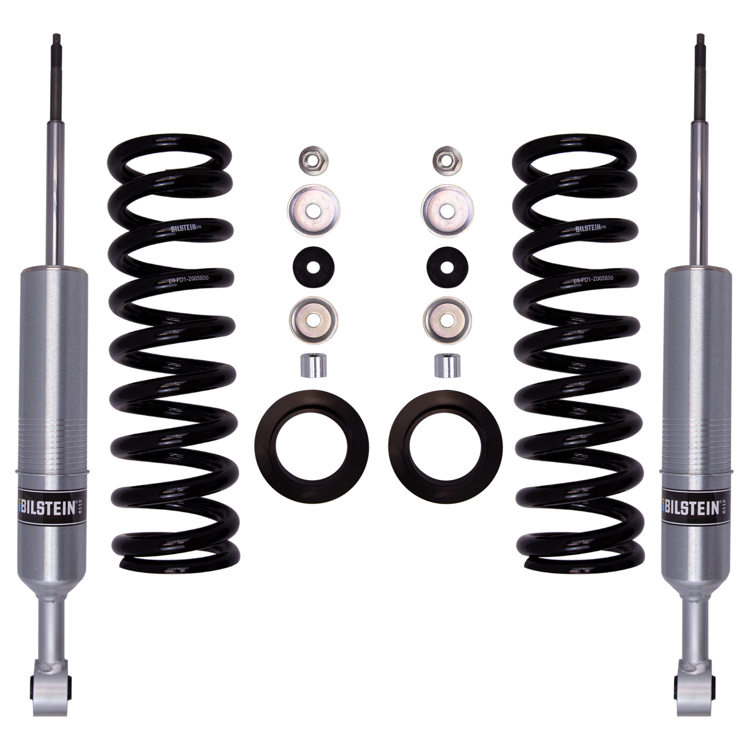 Item Description: B8 6112 - Suspension Kit - Front Suspension Kit - Bilstein B8 6112 leveling kits are designed to provide more ground clearance allow for larger tires and increase wheel travel. Multiple snap-ring grooves in the body allow for different spring seat positions providing 0-2.75 inches of front lift (depending on application). These kits consist of (2) 60mm shock absorbers combined with (2) custom matched cold wound coil springs and (2) billet aluminum spring seats. The large 60mm digressive piston allows for increased damping control for optimal on-road and off-road capabilities. Experience the legendary Bilstein off-road experience with the best direct fit spring and shock kit for your light truck or SUV.