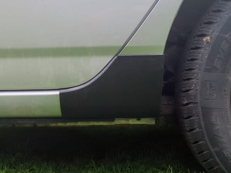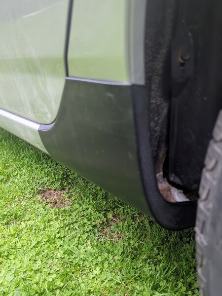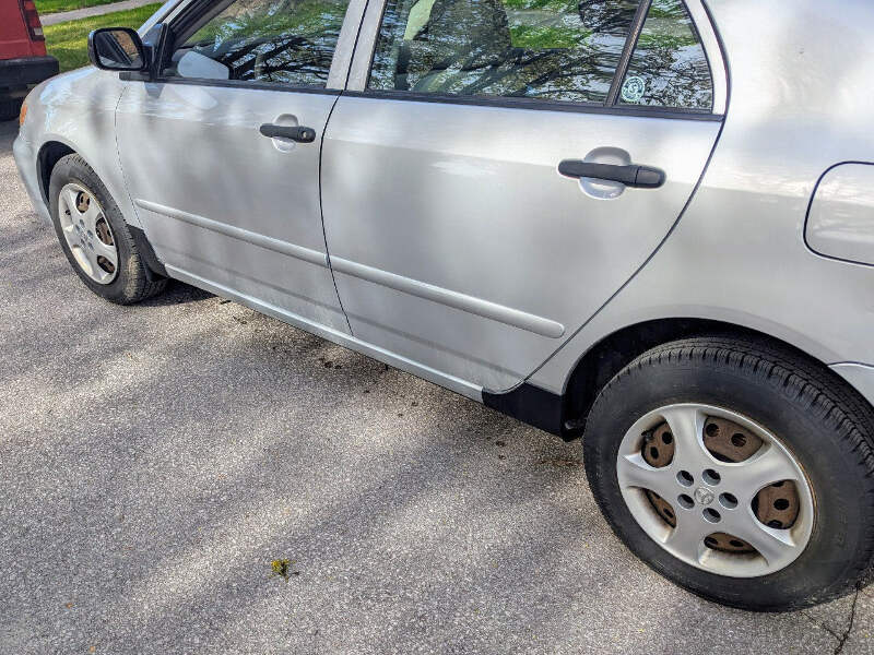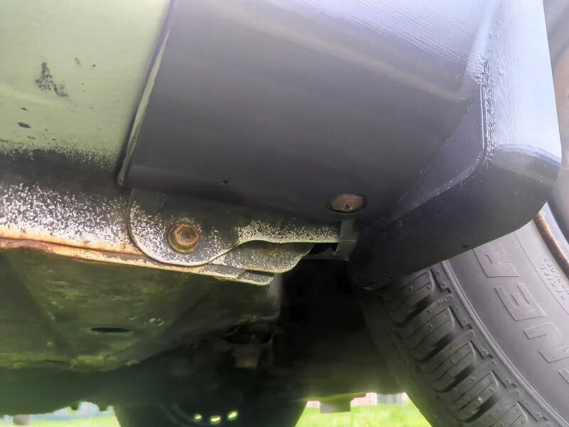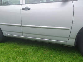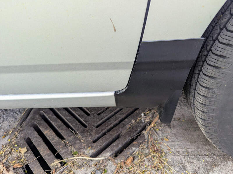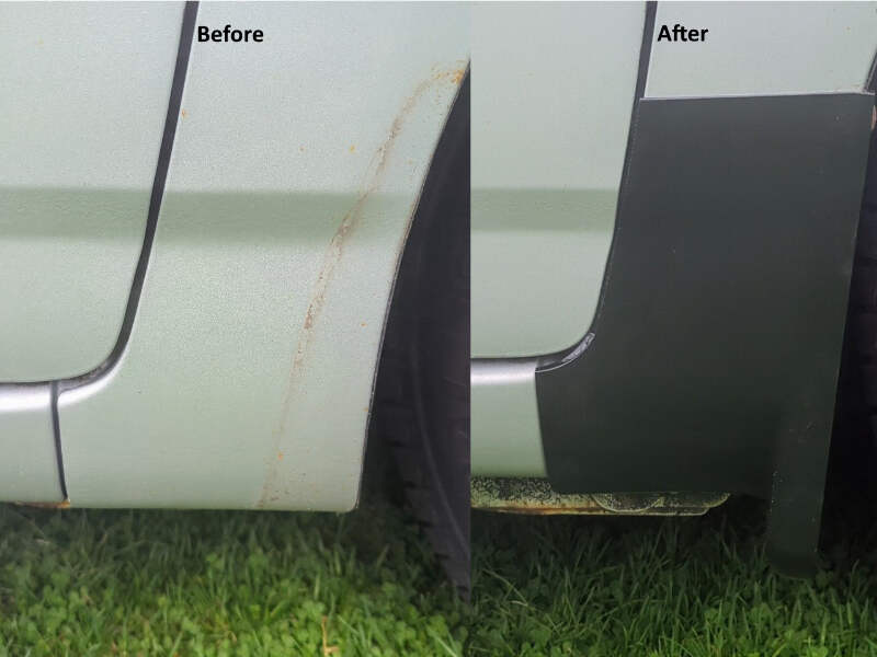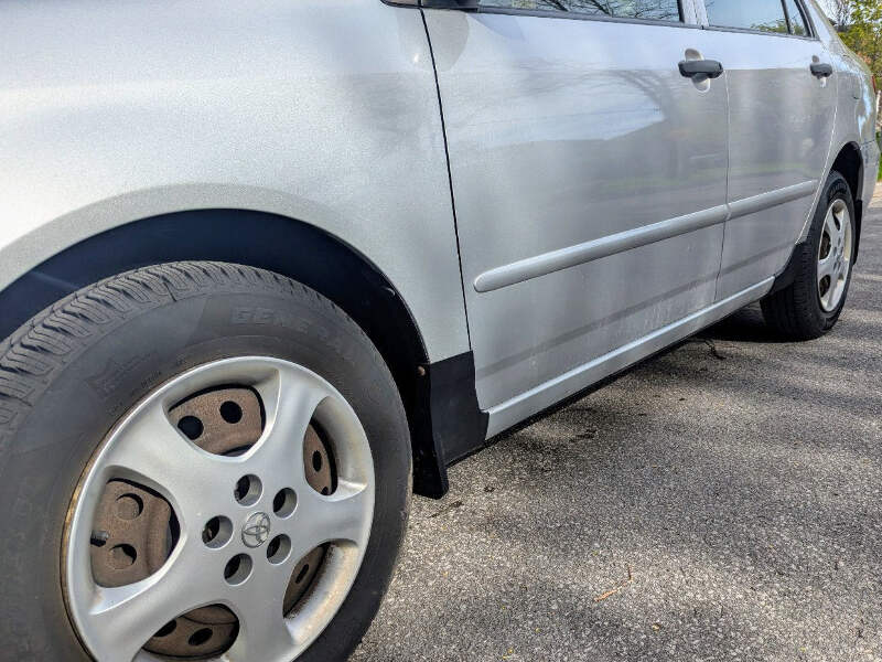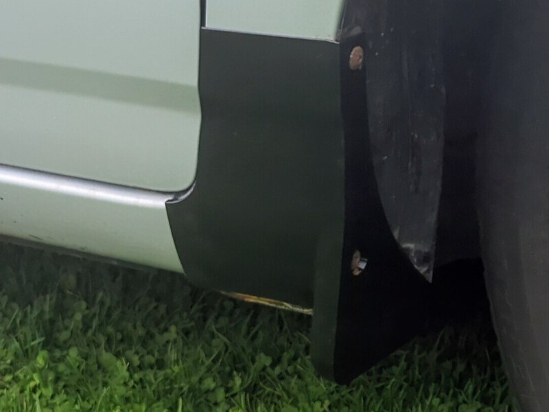2003-2008 Toyota Corolla Front Mudflaps / Rocker Guards. Uséd for months without issue, uses factory mounting holes, and has built in drain holes for water removal. The covers are made of stiff but flexible material, simplifying installation and improving durability. They don't hang lower than the pinch weld on the car.