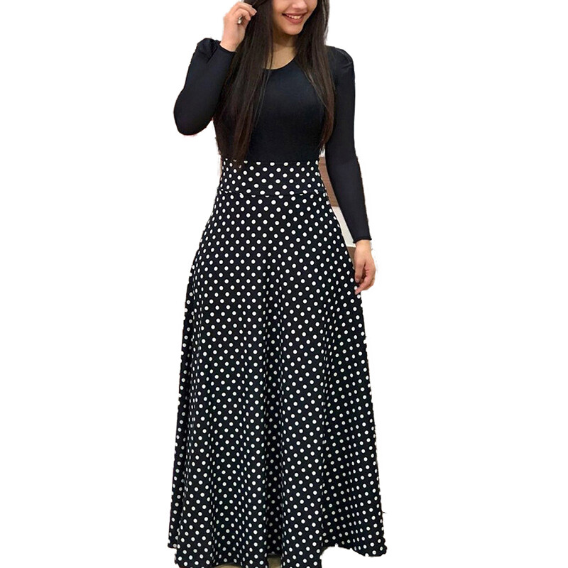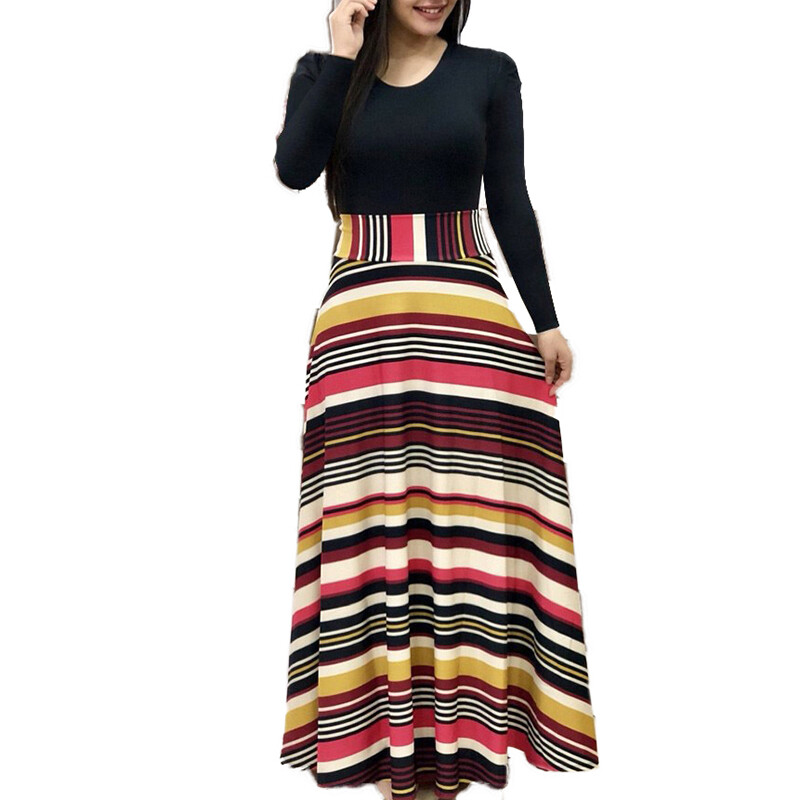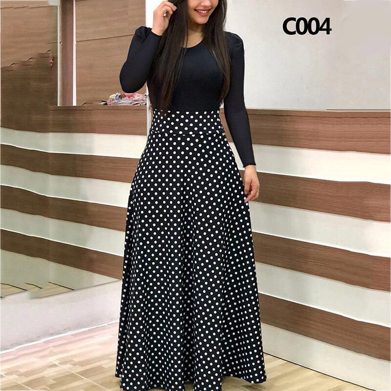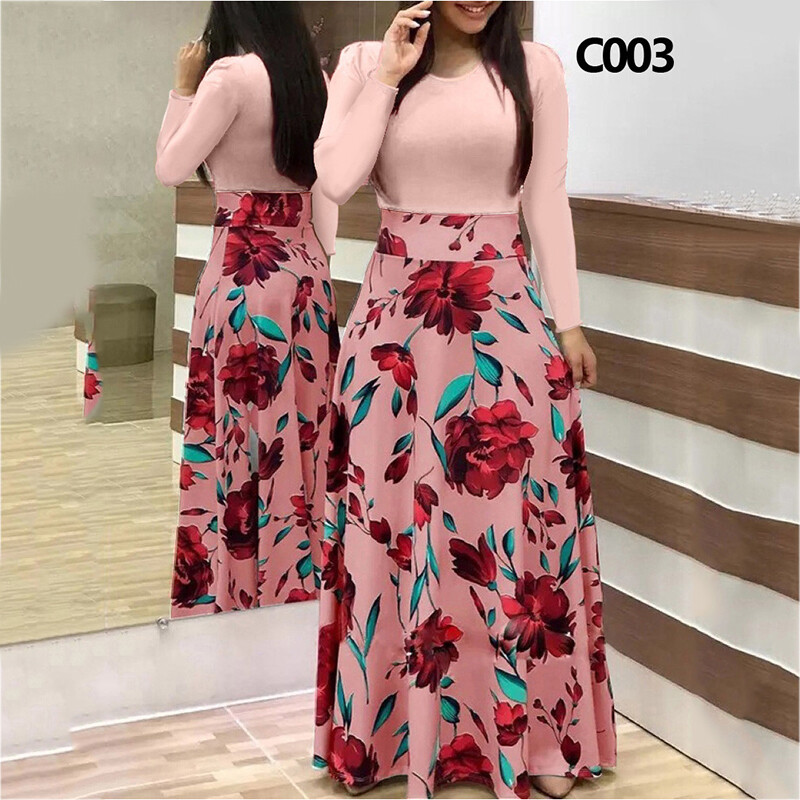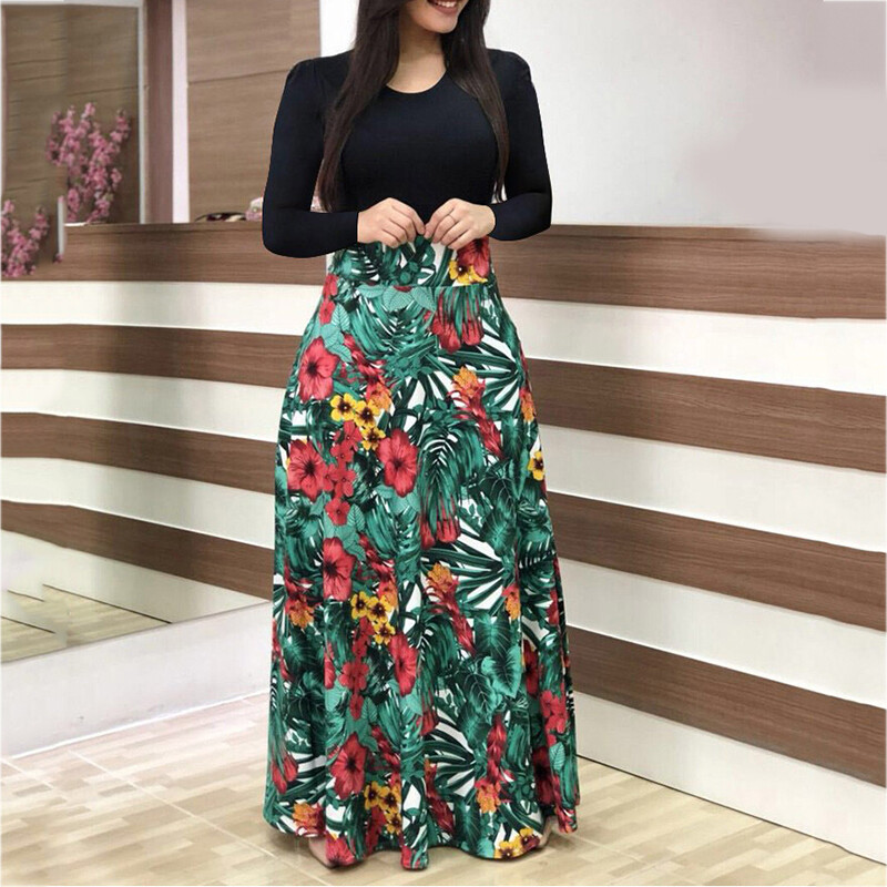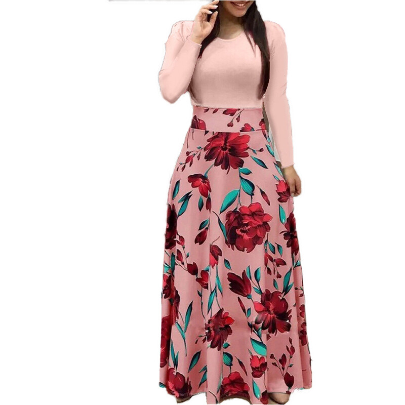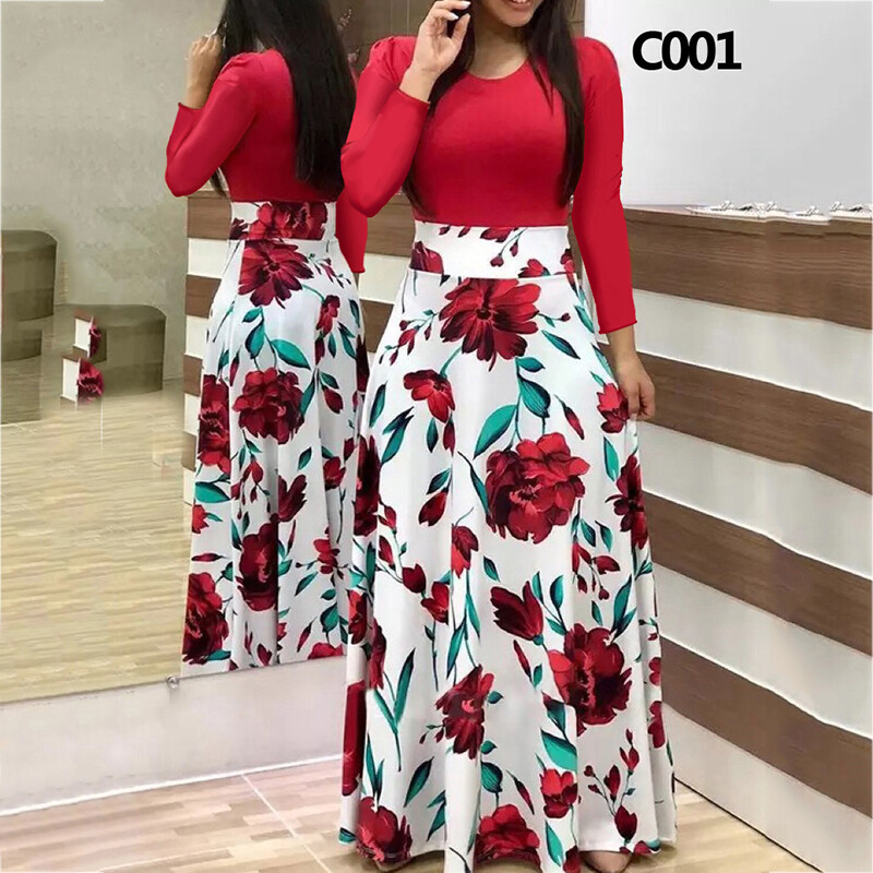 Women Long Sleeve Floral Maxi Dress Ladies Crew Neck Party Holiday Long Dresses