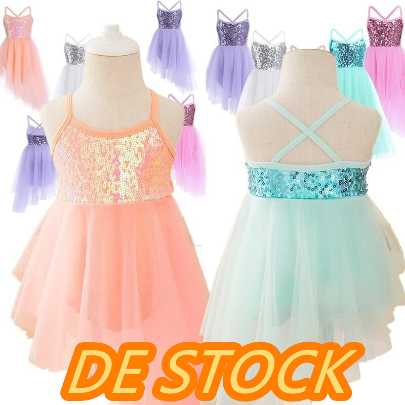 Glitzernde Optik, elastische Beinausschnitte. Dehnbarer Stoff, weich und angenehm zu tragen. Modische Tanzbekleidung für Ihr Mädchen.