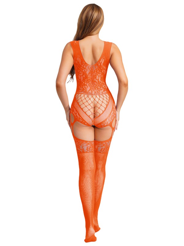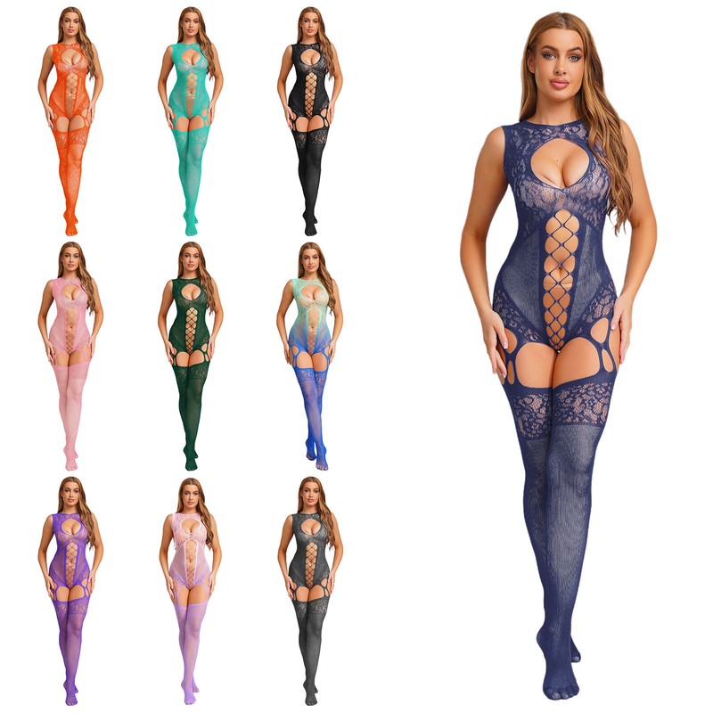 The floral lace and fishnet design adds a touch of femininity and allure, perfectly in line with the current fashion trend of combining delicate elements with edgy details.