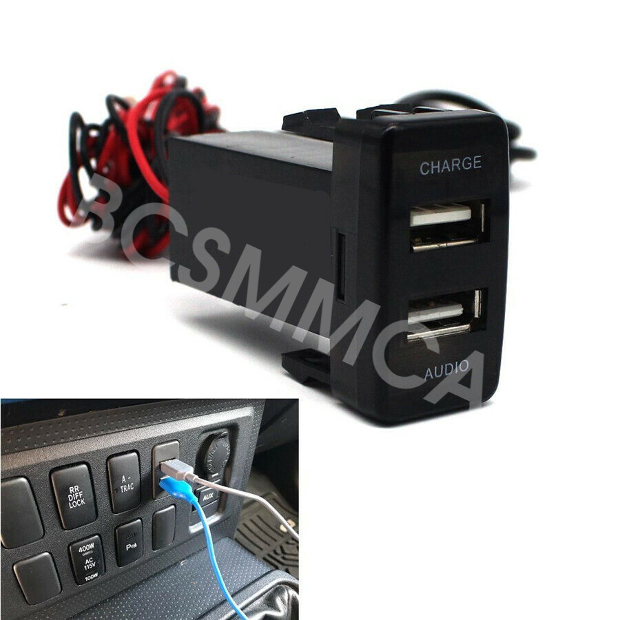 Dual Port USB Car Charger with Audio Socket USB Charging Fit For Toyota 4Runner Highlander FJ Cruiser