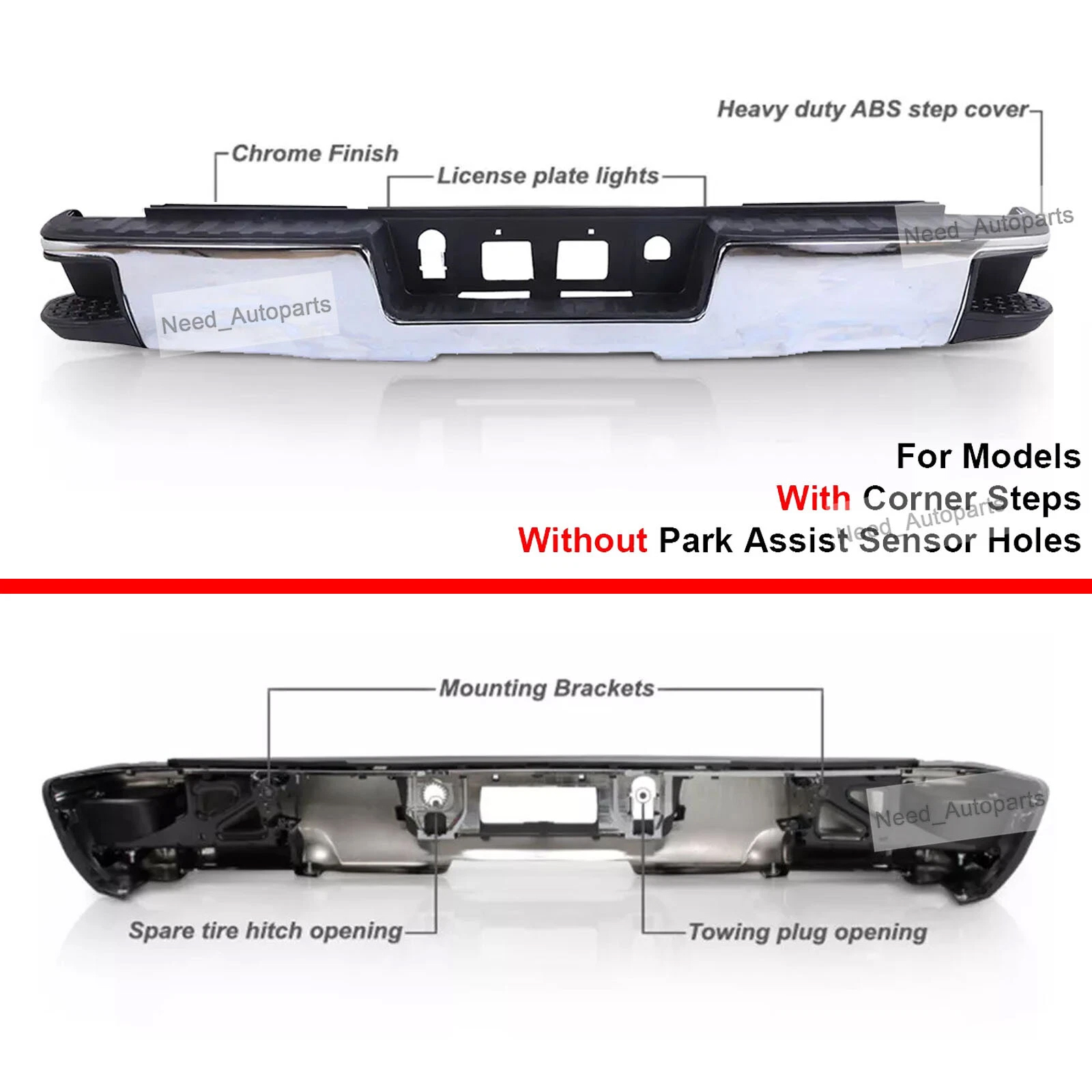 Package Include: 1x Chrome Rear bumper + mounting hardware Materials